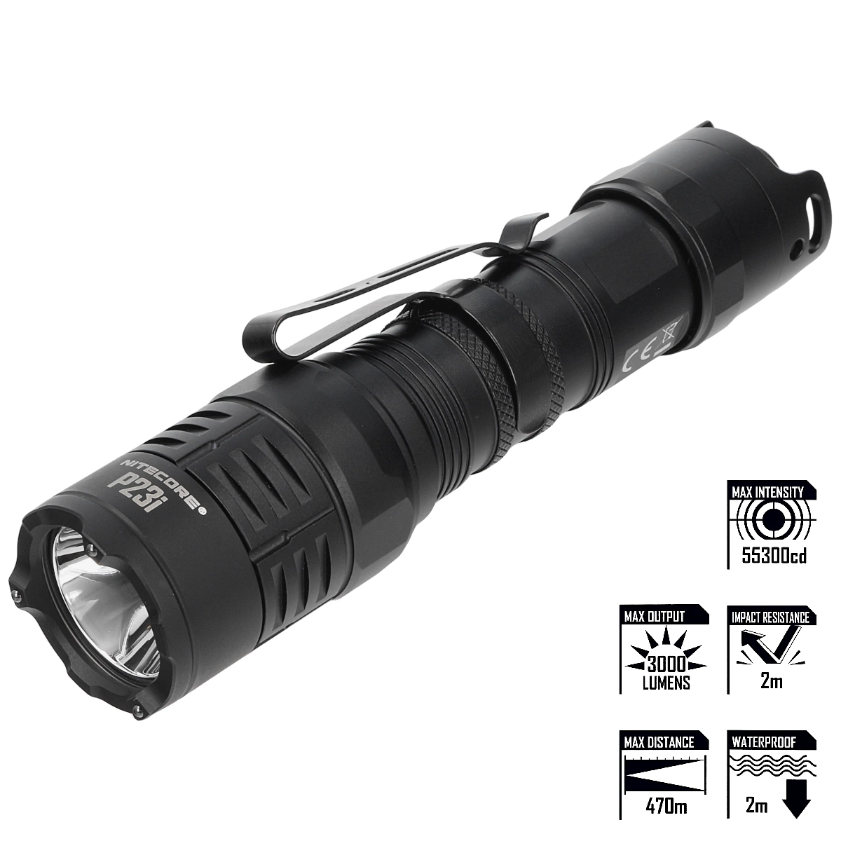 113,07 €NiteCore P23i rechargeable flashlight is super very bright, compact, with a long throwing range. It reaches 3000 lumens max and achieves 470 meters of light range thanks to its single SFT-70 diode and large polished reflector. The Nitecore P23i is the culmination of all the new improvements that fans of the P series have been asking for. It shines further than the P20i, but is much more compact than the P30i.