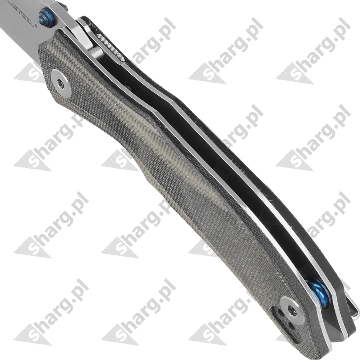 Handle - is two pieces of G10 laminate and Micarta, practically indestructible plastics, insensitive to weather conditions, resistant to chemicals and mechanical damage., textured to improve grip security, screwed to the steel frame of the knife. The chamfered edges of the covers eliminate sharp edges and the textured surface improves grip confidence. The open-backed design, so called, fastened together with steel spacer sleeves, reduces weight and makes cleaning easier. The simple, sturdy design provides assurance of many years of use. Fore finger groove improves grip security. A two-position (right/left) deep carry clip allows the knife to be carried in tip-up position.