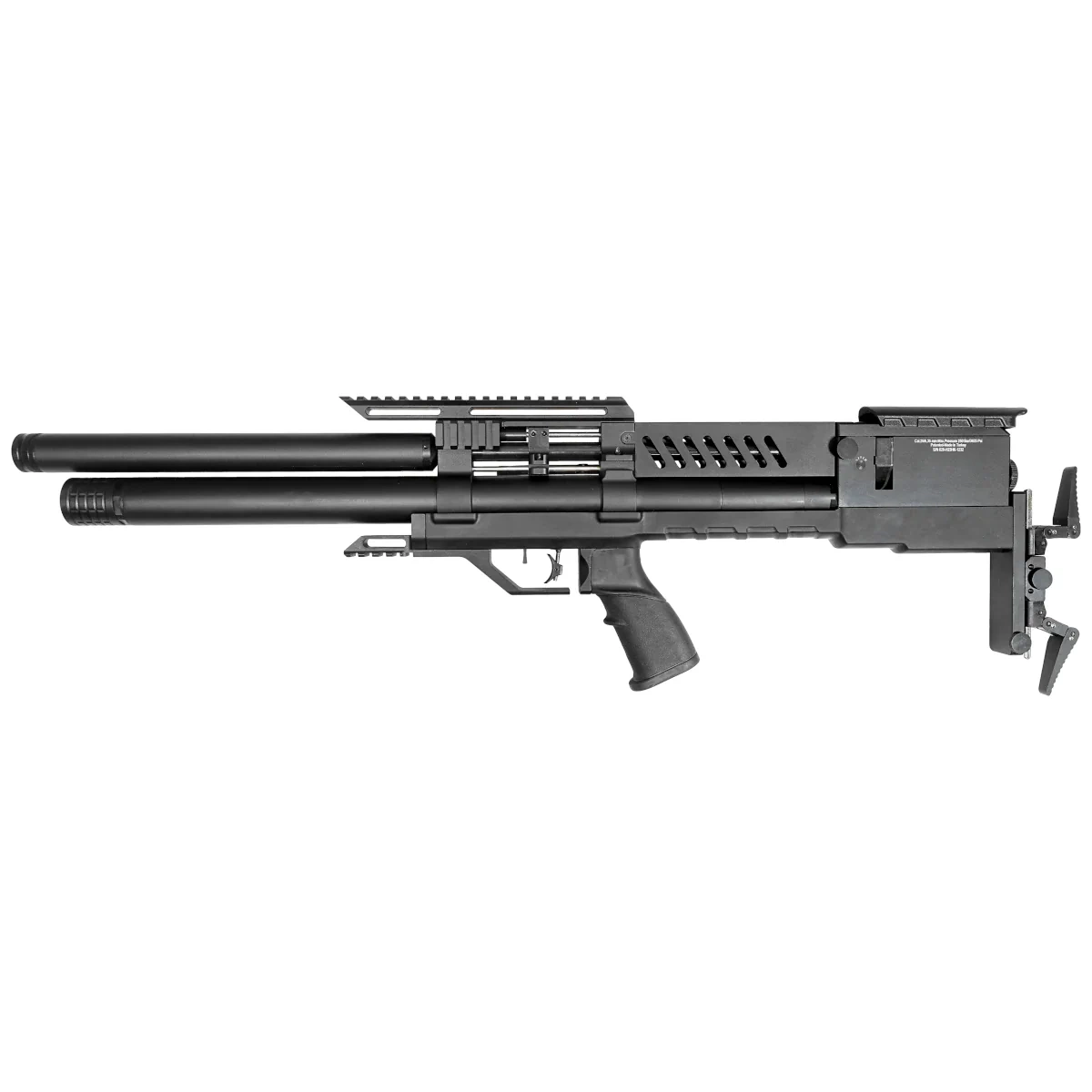 Reximex Meta, modern PCP air rifle in the version known for its offset chamber and magazine behind the trigger bullpup. By using a cradleless, obtained compact dimensions of the rifle, while maintaining the normal length of the barrel to guarantee accuracy and range, as well as the weight reduction typical of this design for better control. The air rifle is equipped with lever tensioning Side Lever, shot power regulator, adjustable in 3 planes footer, monopod and a barrel with an integrated sound suppressor. Available in calibers: .177 (4.5 mm), .22 (5.5 mm), .25 (6.35 mm).