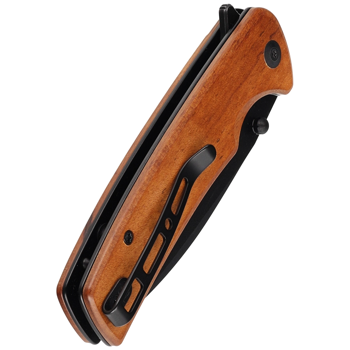 Sachse Guibourtia Wood, Black Stonewashed all-purpose folding knife at a great price, designed for easy carrying. A lightweight folder with a reversible clip and Button Lock with gravity opening of the blade. Considered one of E.D.C.'s best knives, it received recognition at the Blade Show knife fair winning the 2022 Best Buy of The Year award.