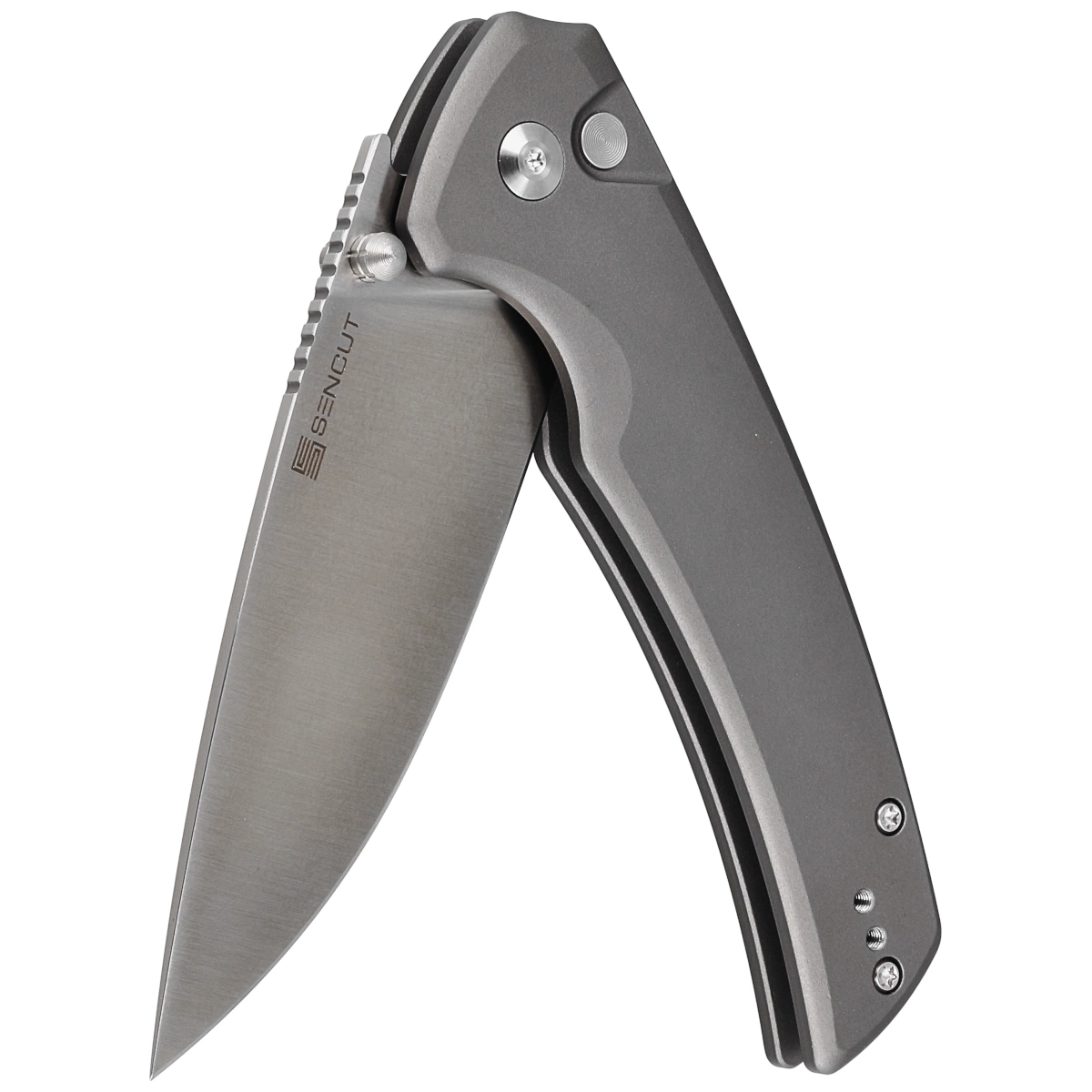 - Serene Gray Aluminium, Satin excellent EDC folder. Blade Drop Point blade made of D2 tool steel opens with gravity, a pin in the blade or a flipper. Aluminum grips. The perfect companion for everyday wanderings! Bestseller!
