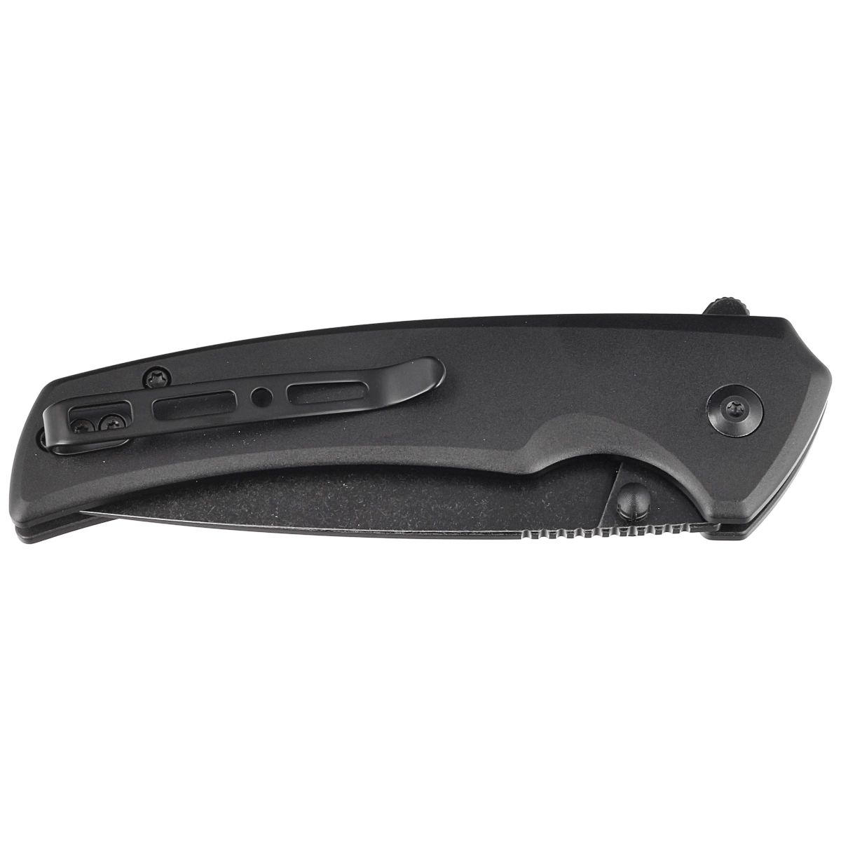 Handle - in black. Made of aluminum, whose beveled edges of the covers eliminate sharp edges for comfort, and the fore finger groove made on the front improves grip security. The open-backed design, fixed with steel spacer sleeves, reduces weight and facilitates cleaning. Two-position, right/left deep carry clip allows you to carry the knife discreetly in your pocket in tip-up position (blade tip up).