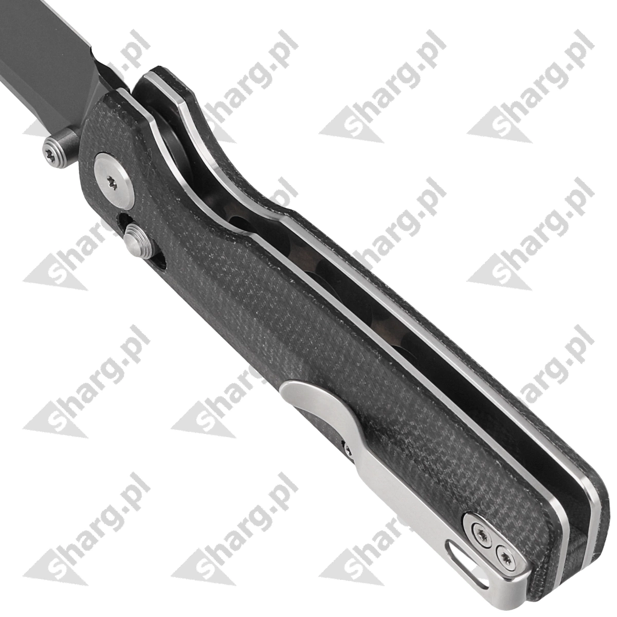 Handle - grips made of Micarta, a practically indestructible material insensitive to weather conditions, resistant to chemicals and mechanical damage Chamfered edges of the covers eliminate sharp edges and characteristic texturing of the surface improves grip security. The solid backspacer to which the grips are attached guarantees the rigidity and strength of the entire structure. The two-position (right/left) clip allows the knife to be carried in tip-up position, with the tip of the blade upwards.