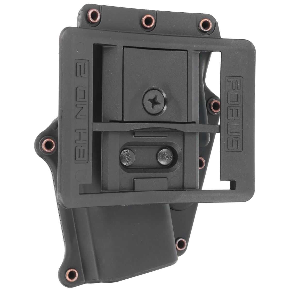 BH ND (Belt Holder New Design) - a slip-on mount for a 33mm to 60mm wide belt (police belt). Designed to fit the holster as close as possible to the wearer's silhouette. Suitable for concealed weapon carrying when discretion is important. Handle without adjustable holster angle.