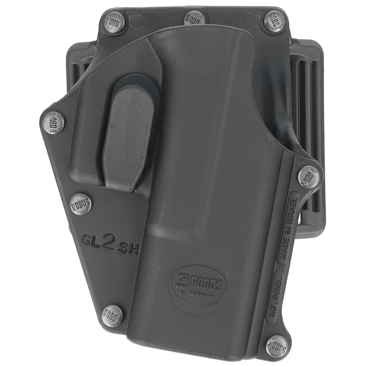 GL-2 SH BH open outer OWB (Outside the Waist Band) type SH holster from Israeli company Fobus suitable for belt carry. The SH series focuses on safety. Equipped with the Trigger Guard Locking System mechanism, it solves the problem of securely carrying and retrieving the weapon. The holster protects the weapon from damage and does not tend to move.