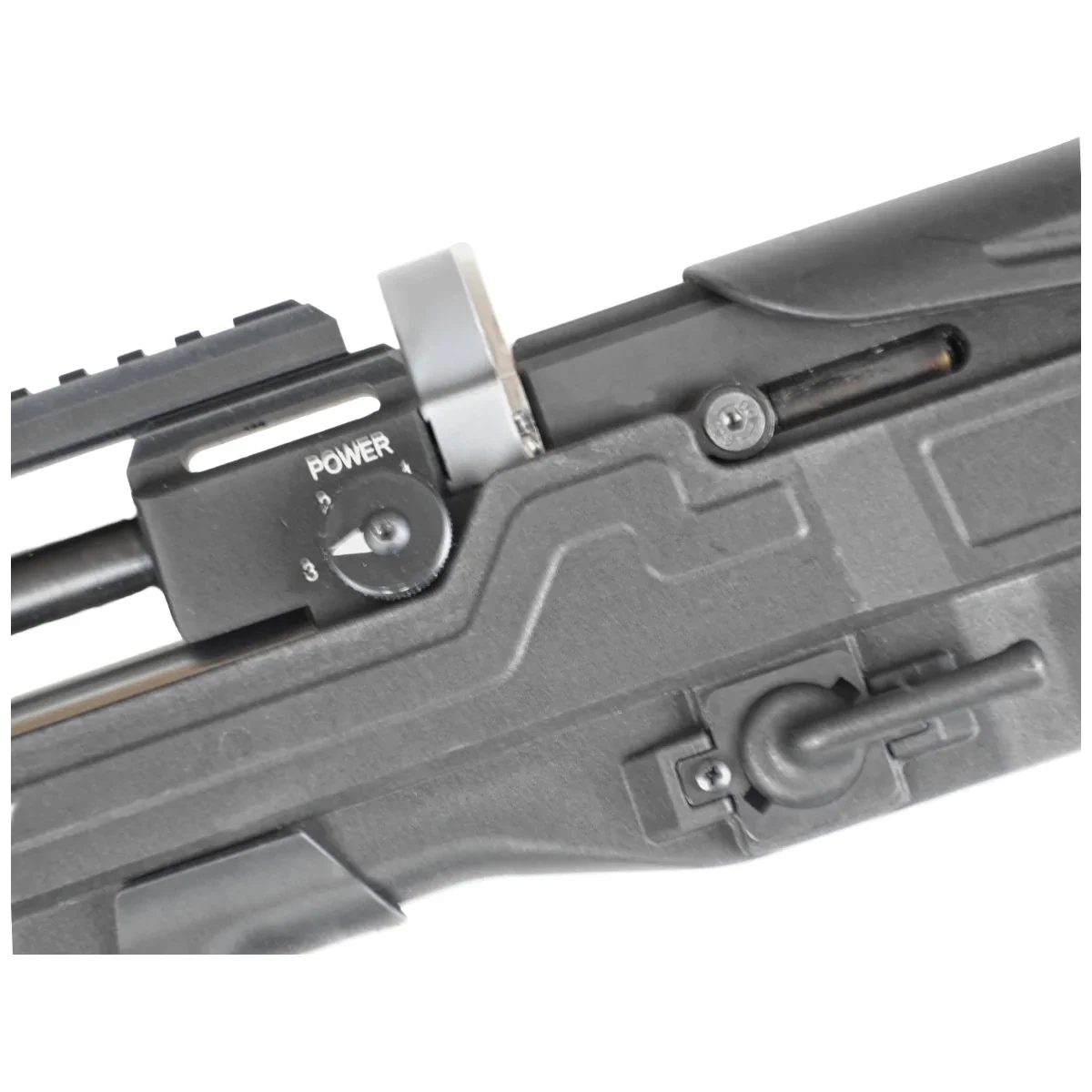 Factor FT PCP air rifle from Hatsan, equipped with a side lever action, power adjustment regulator, trigger mechanism adjustment knob, QE barrel with an integrated sound moderator.