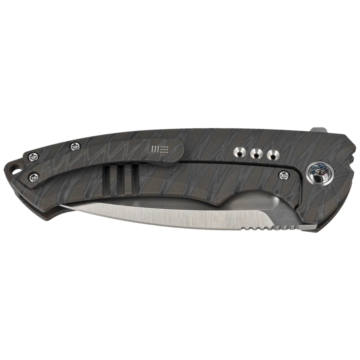 WE Knife Nexusia LE No ???/150 Tiger Stripe Titanium, Satin CPM 20CV (WE22044-3)