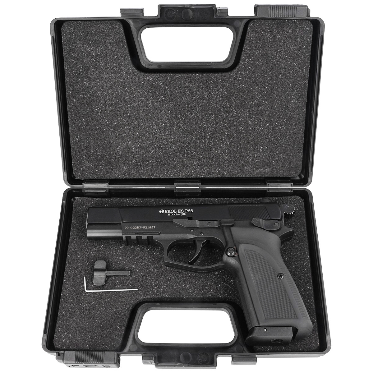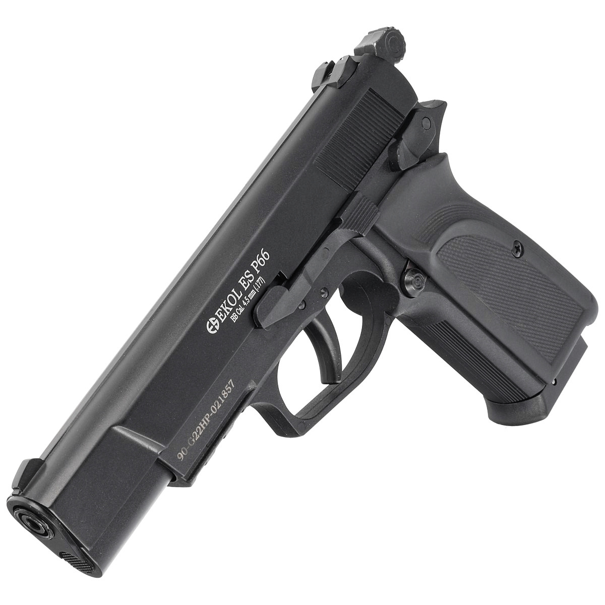 Ekol ES P66 Matte Black is an ultra-lightweight, modern semi-automatic air pistol, structurally based on the blank pistol design by Voltran. It offers a realistic appearance combined with a solid construction for durability and reliability. The slide, frame, hammer, decocker lever, and various small components are made of metal. With such strong origins, this is one of the most powerful air pistols available—achieving a velocity of 150 m/s, making it ideal for dynamic sport shooting as well as tactical training.