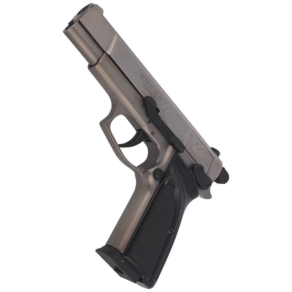 Ekol ES 66 Fume is an air pistol based on the blank-pistol design by Voltran. It offers a realistic appearance and a metal solid construction for durability and reliability. The slide, frame, hammer, decocker lever, and small components are all made of metal. With such strong roots, this is one of the most powerful air pistols, reaching a velocity of 150 m/s, making it suitable for dynamic sport shooting or tactical training.