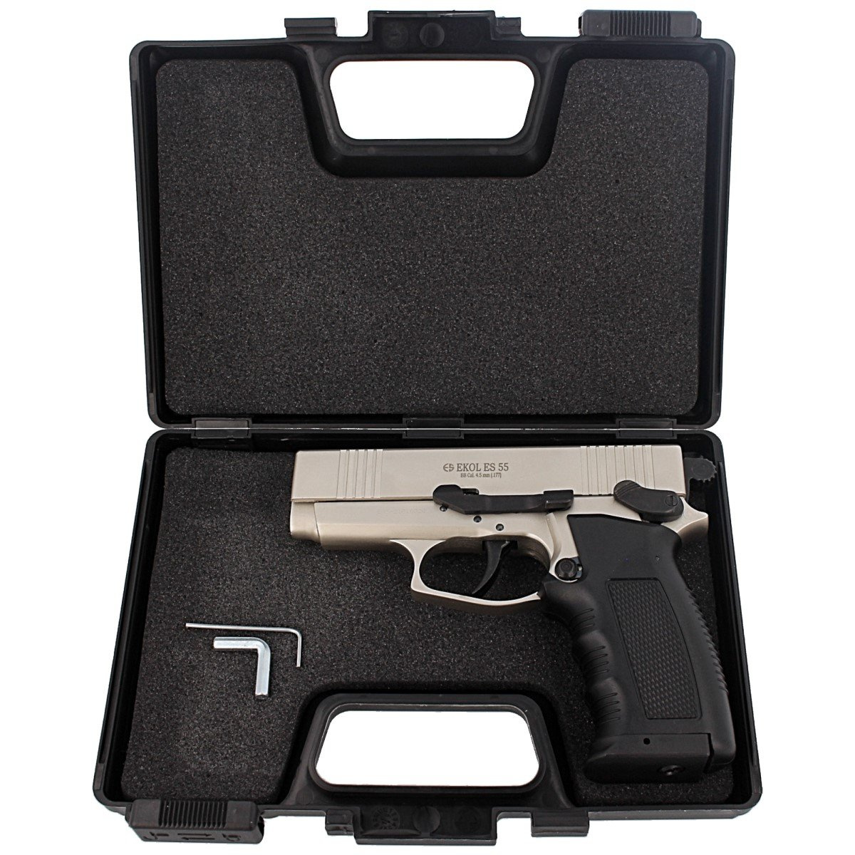 • Ekol ES 55 Satin - airgun designed based on blank pistol construction. With such strong heritage, this powerful pistol, reaching a velocity of 140 m/s, is well-suited for dynamic shooting and tactical training.