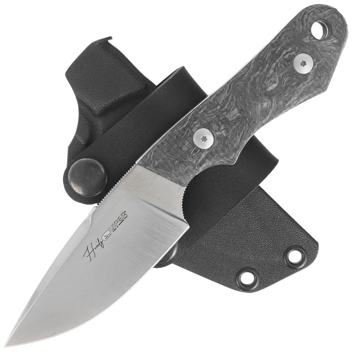 Handy Dark Matter Carbon Fiber, Satin versatile and perfectly balanced compact fixed blade knife designed by Fabrizio Silvestrelli. Dimensions, weight, ergonomics, this knife is designed for hunting as well as any outdoor activity. Targeted at bushcraft, survival and hunting enthusiasts.