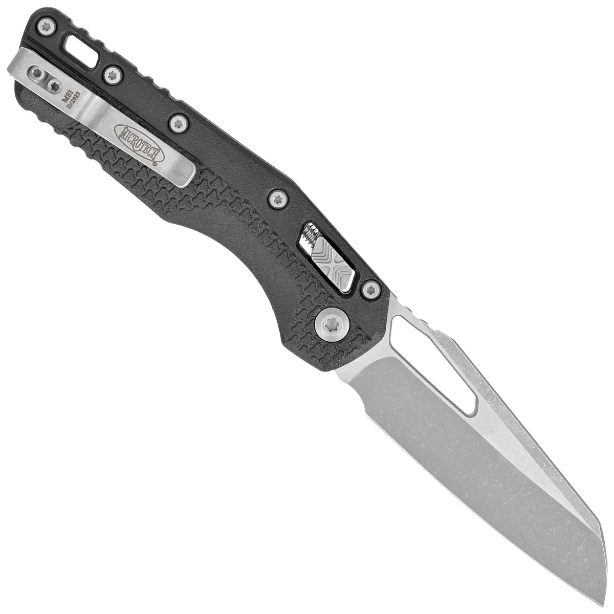 Handle - made of durable polymer, covered with Tri-Grip texture for better grip. Wide locking slide with Microtech's characteristic stepped X structure. Both grips are bolted together with a solid aluminum backspacer. The double-sided (right / left) clip allows you to discreetly carry the knife in tip-up position. Above the clip a lanyard hole, a place for a safety or decorative cord.