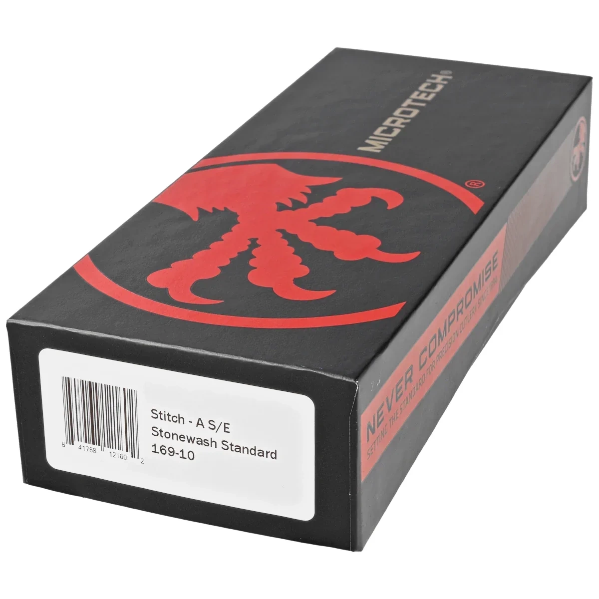 Stitch-A S/E Black Aluminum, Stonewashed bold design of a versatile automatic knife, the result of a collaboration between Sebastijan Berenji and Microtech. A wide Blade and a simple handle, comfortable in every grip, give a strong tactical knife made with attention to the finest details and from the best materials. A faithful companion that will never disappoint