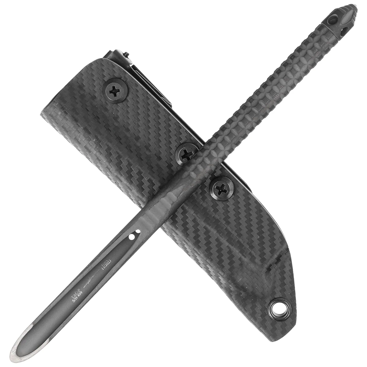 The TAC-P Spike Black DLC is a tactical tool made of high-quality 410 stainless steel. The slim design with a needle-like tip is designed for precise penetration of even the hardest materials. The glass breaker at the end of the handle allows for fast and effective breaking of glass in emergency situations. Thanks to the specially profiled handle, the grip remains secure and stable, even in a humid environment or during intensive work. The set includes a matching holster made of durable kydex material, which allows for comfortable wearing on a belt or tactical vest. The whole thing has been designed with discretion, comfort of use and the highest degree of reliability in mind. The product is appreciated by specialists and enthusiasts of premium equipment for its precise workmanship, minimalist design and readiness to work in the most demanding conditions.