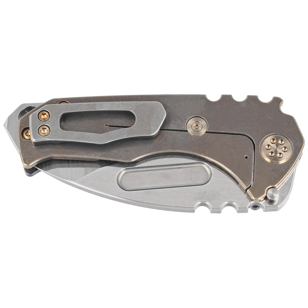 The elite Imperial Praetorian Guard was a unit into which the best of the Roman legionaries were selected to serve as the Emperor's personal protection. The MKT Praetorian Genesis T Drop Point, Blue Titanium, Bronze HW, Std Clip, NP3 Breaker, Tumbled is just such an elite knife. Its amazing design is limited only by the strength of its materials. With a 4.8mm thick blade, solid 3.2mm thick titanium grips and 6.35mm thick pivots and screws, it stands out from other knives. Beautiful form and function, unrivaled reliability, this is a knife for enthusiasts who do not recognize compromise and demand the highest standards!