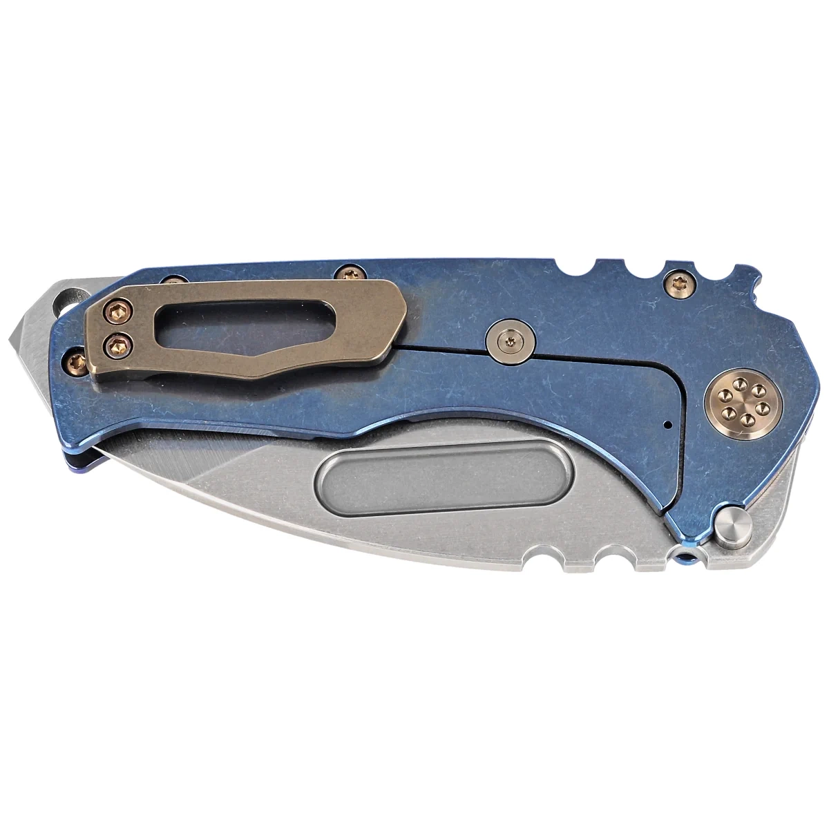 Medford Praetorian T DP Blue Titanium, Bronze HW/Clip, Tumbled S45VN by Greg Medford