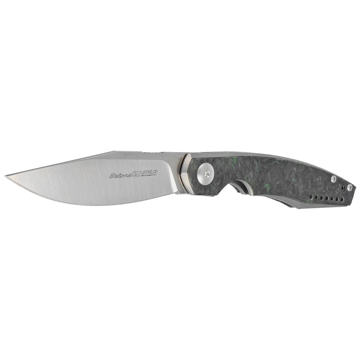 - Belone Titanium Stonewashed / Dark Matter Green Fat Carbon Fiber, Satin shape derived from traditional Italian knives. Designed according to the minimalist style of Danish knifemaker Jesper Voxnaes. A lightweight knife adorned with sophisticated details!