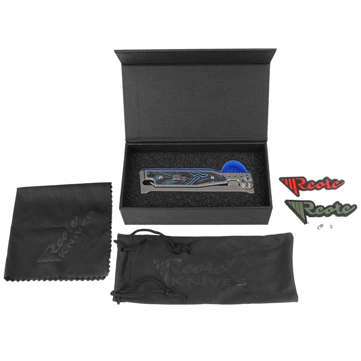 Reate Knife EXO-M OTF Gravity T/E Bead Blasted Titanium/Damascus Blue-Black G10, Satin Elmax