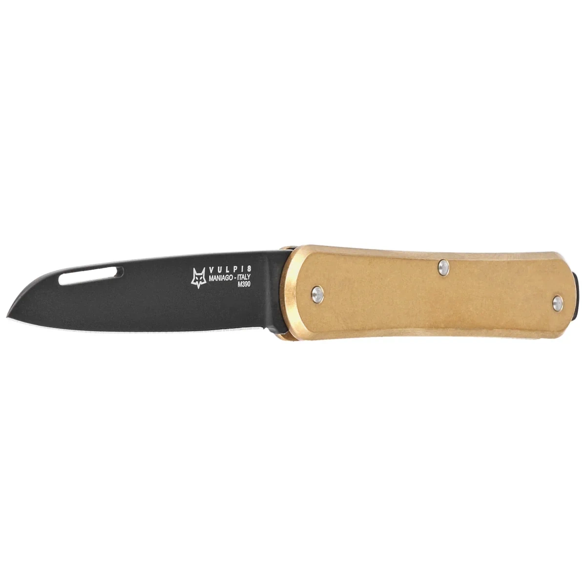 - Vulpis Brass, Black Top Shield, if you're bored with Swiss design, try Italian elegance! The new Fox Knives Vulpis series wants you to not give up good steel in a new small and versatile multi-tool!