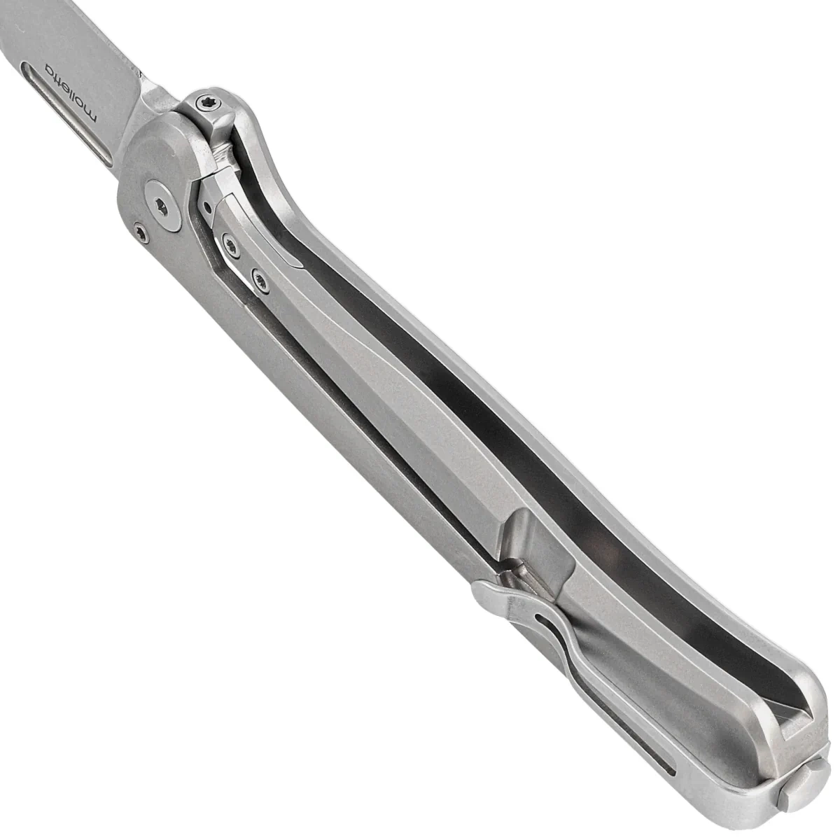 Skinny Grey Titanium/Carbon Fiber, Stonewashed, this folding knife in which innovation meets tradition won recognition at the Blade Show knife fair by winning the Imported Knife of The Year 2024 award. The compact but powerful folding knife, the result of combining Italian craftsmanship with the latest technologies, is the work of Michele "Mollletta" Pensato, a renowned knife designer.