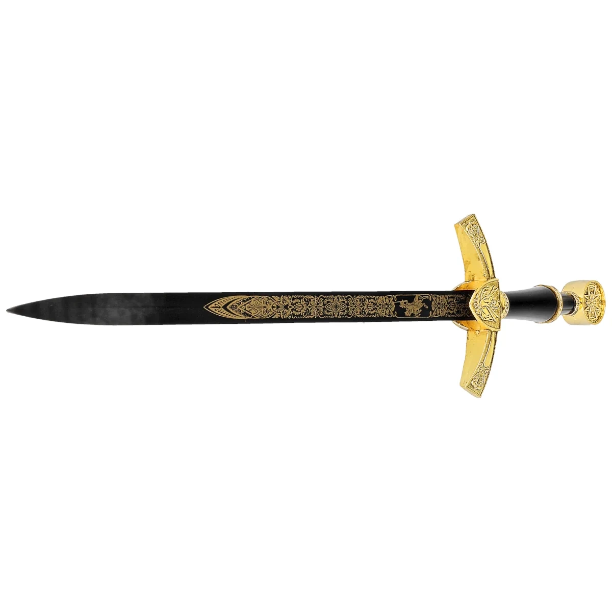30,05 €Medieval Dagger 15422 is an elegant replica inspired by historical knightly weaponry. Its richly decorated details and striking black-and-gold contrast give it a unique character, making it a perfect choice for collectors and enthusiasts of medieval aesthetics.