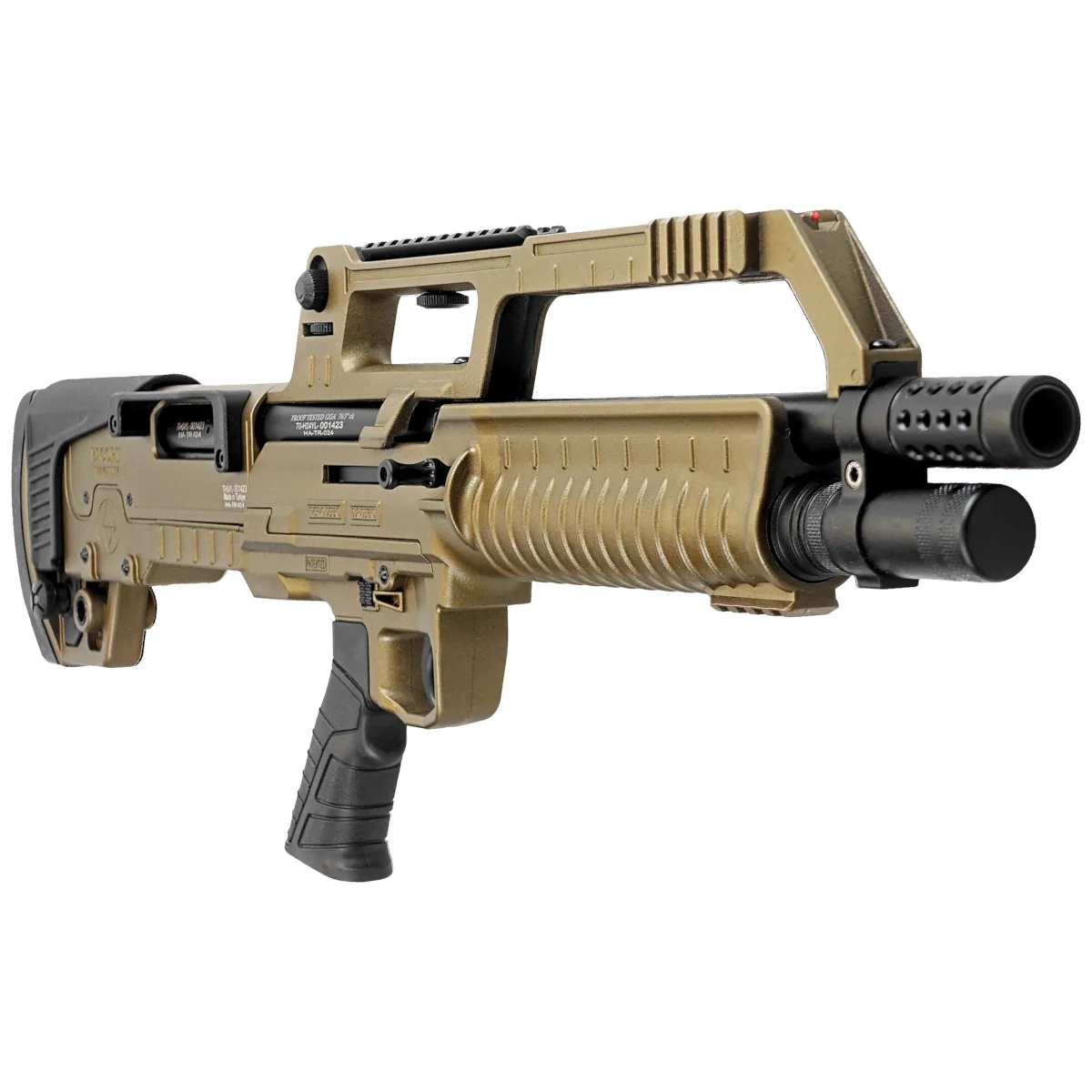 • Hatsan Escort Bull Tac SA Bronze 20" 12GA Semi-Auto Shotgun is a modern bullpup-style firearm that combines compact dimensions with high firepower thanks to its semi-auto system. Designed for 12/76 mm ammunition.