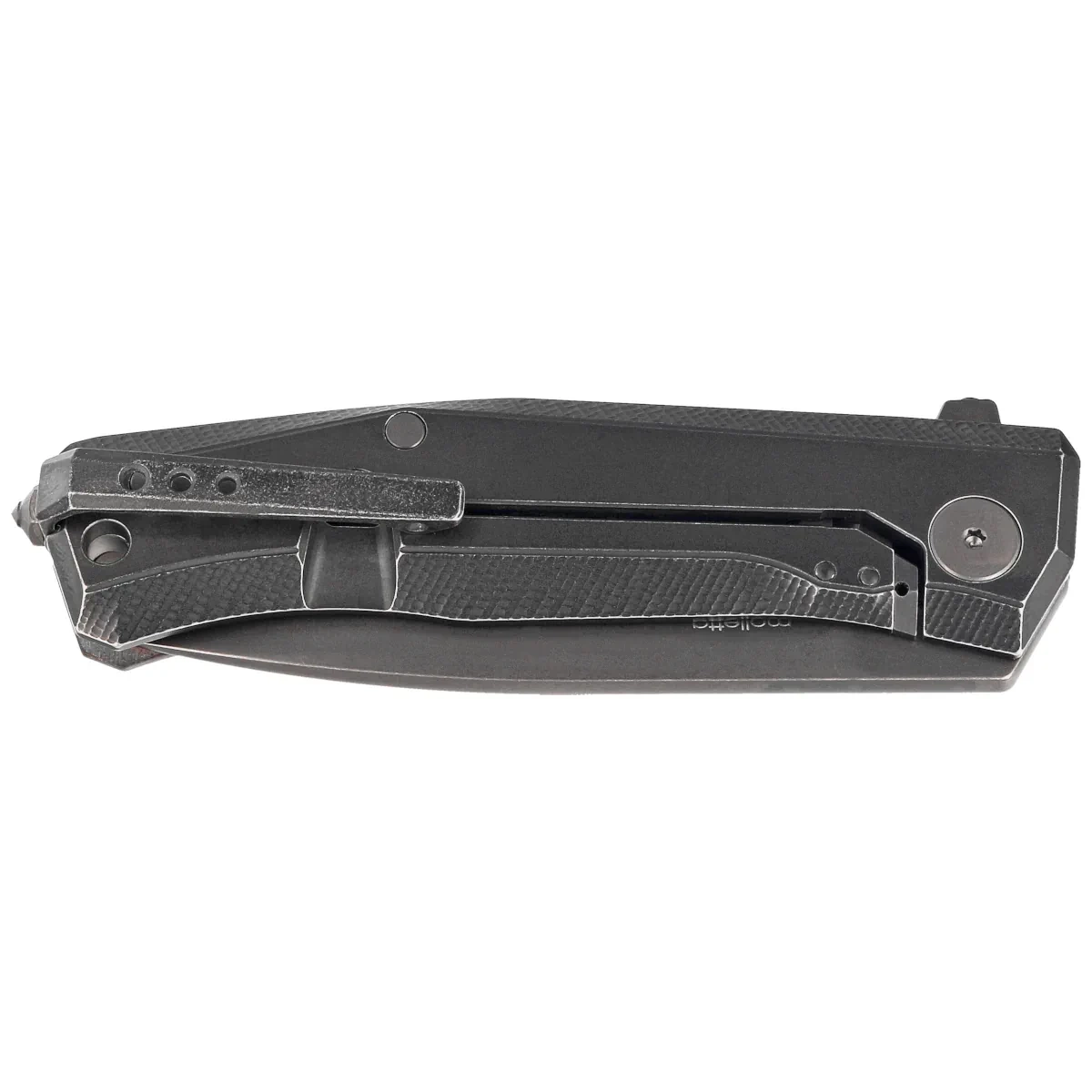 ReF - (Removable Flipper System) located on the underside of the blade protrusion / flipper fin assisted by Double Crown makes it easy to open the blade with one hand. It consists of a small lever (protrusion) that extends beyond the back of the Handle when the Blade is closed. In the open position, the protrusion acts as a stinger, protecting the hand from slipping on the blade. In the folder, it is possible to unscrew the Removable Flipper System lever (unscrew the flipper fin, then insert the second screw included in the box) and open the blade with both hands. This is important in countries where there is a ban on knives with one-handed opening blades in public places.