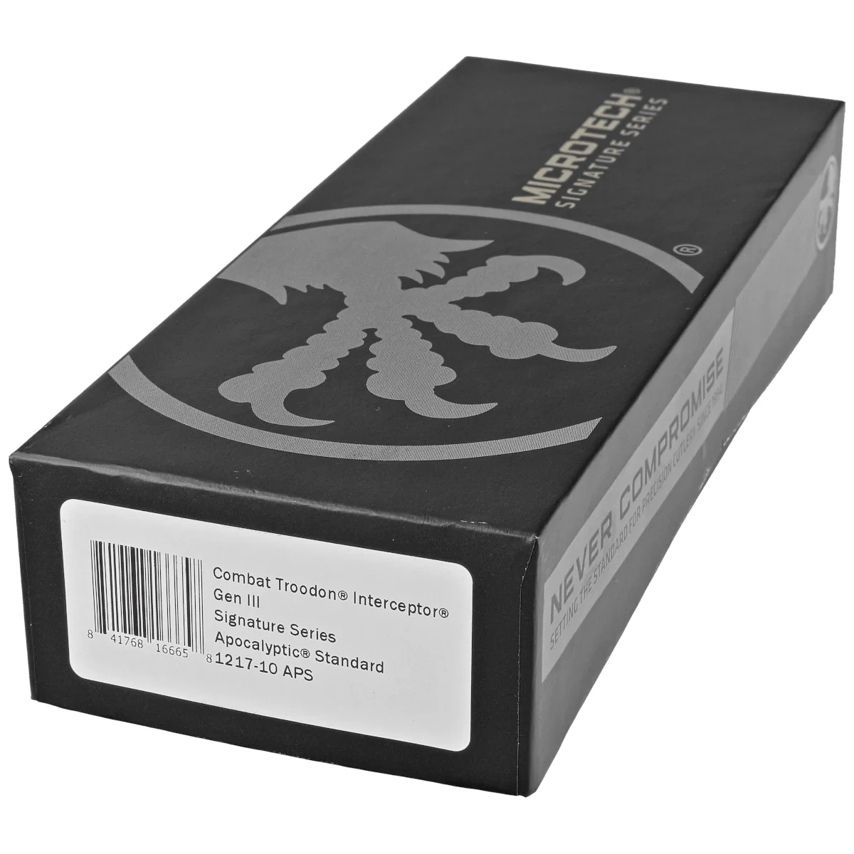 Microtech Combat Troodon Gen III Interceptor Signature OTF Knife Black Aluminum, Apocalyptic M390MK by Tony Marfione (1217-10APS)