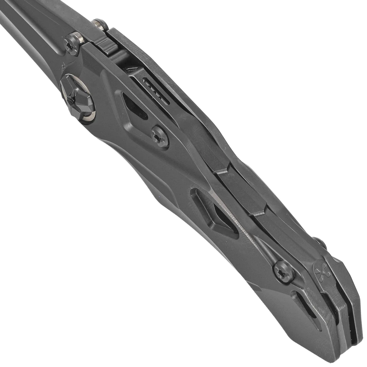 DLC (Diamond Like Carbon) durability of the blade surface is enhanced with a matte black nanocomposite coating, which exhibits unique properties such as exceptional hardness and low friction, as well as excellent corrosion protection. It is one of the most resistant coatings to scratches and abrasion that are used in the industry, including the knife industry.