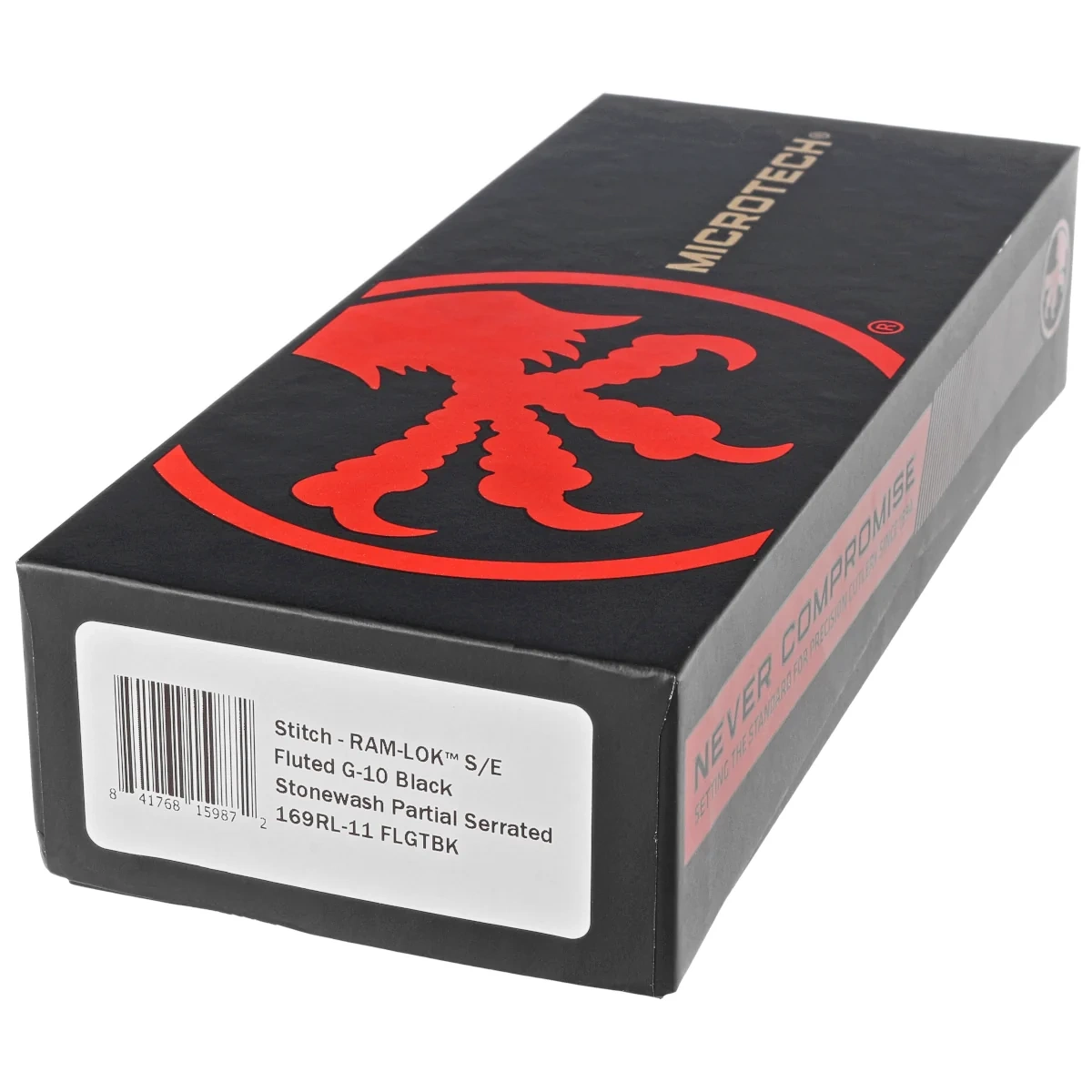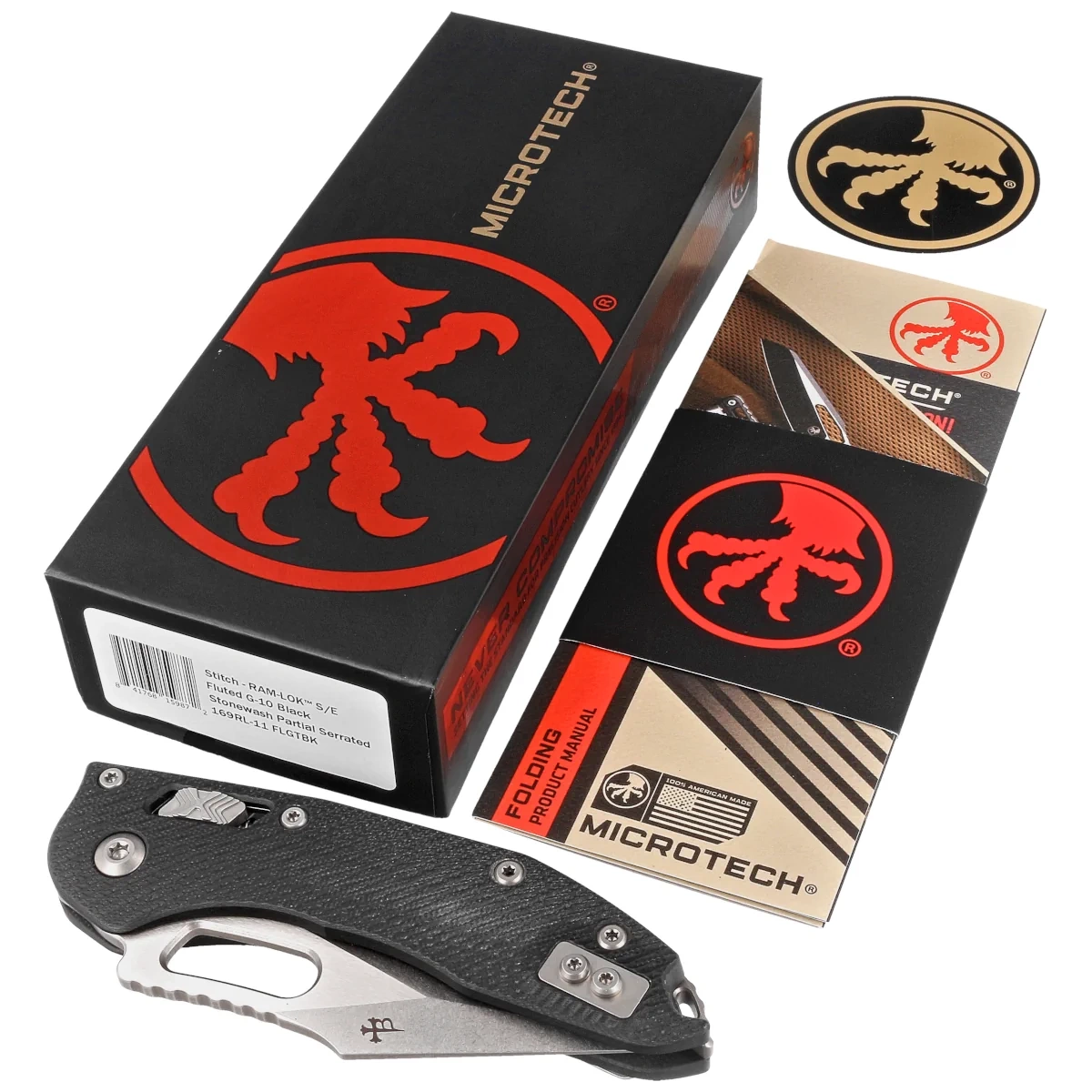 - Stitch Ram-Lok S/E Black Fluted G10, Stonewashed P/S manual version of the popular design by Sebastijan Berenjie of Borka Blades and Microtech. Wide harpoon-shaped blade, superior materials and legendary quality workmanship from Microtech Knives.