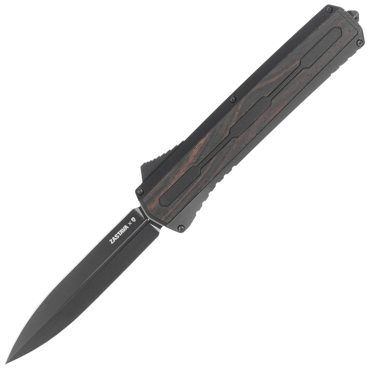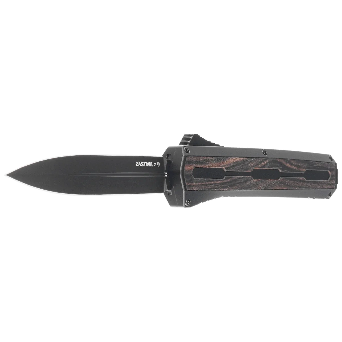 - A7 Zastava D/E Black Aluminum/Tactical Black Wood, Black tactical OTF knife, created in collaboration with Zastava Arms, draws inspiration from iconic Zastava M70 rifle. Aluminum & wood handle. Blade made of S35VN steel, coated titanium-based black finish