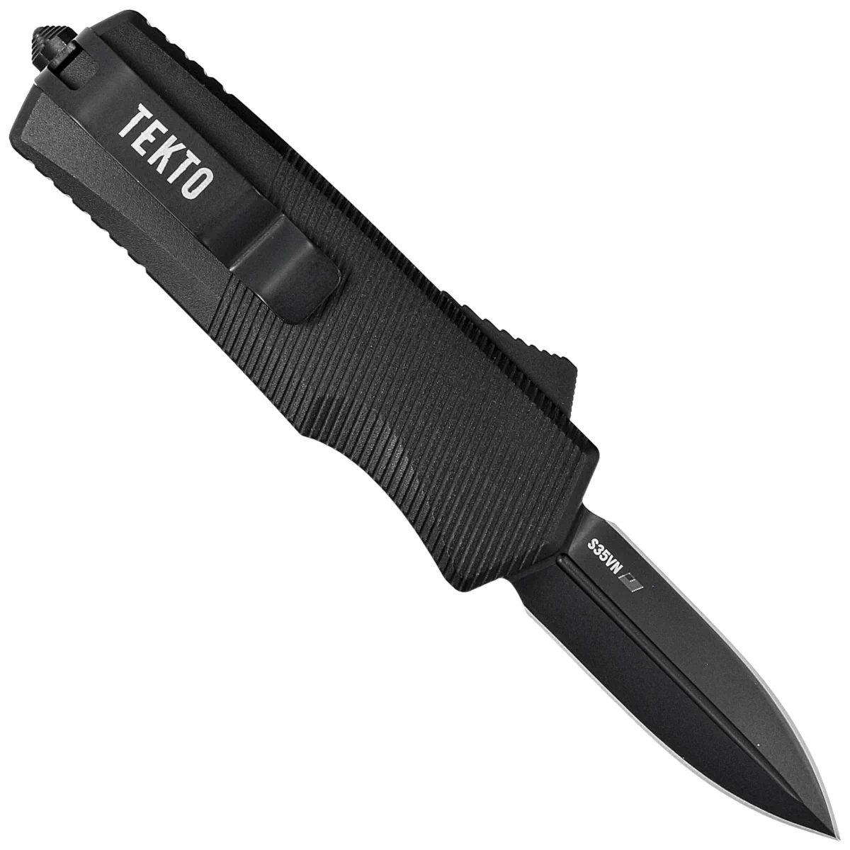 Tekto A5 Spry Mini D/E Black Aluminum OTF Knife, Black CPM S35VN