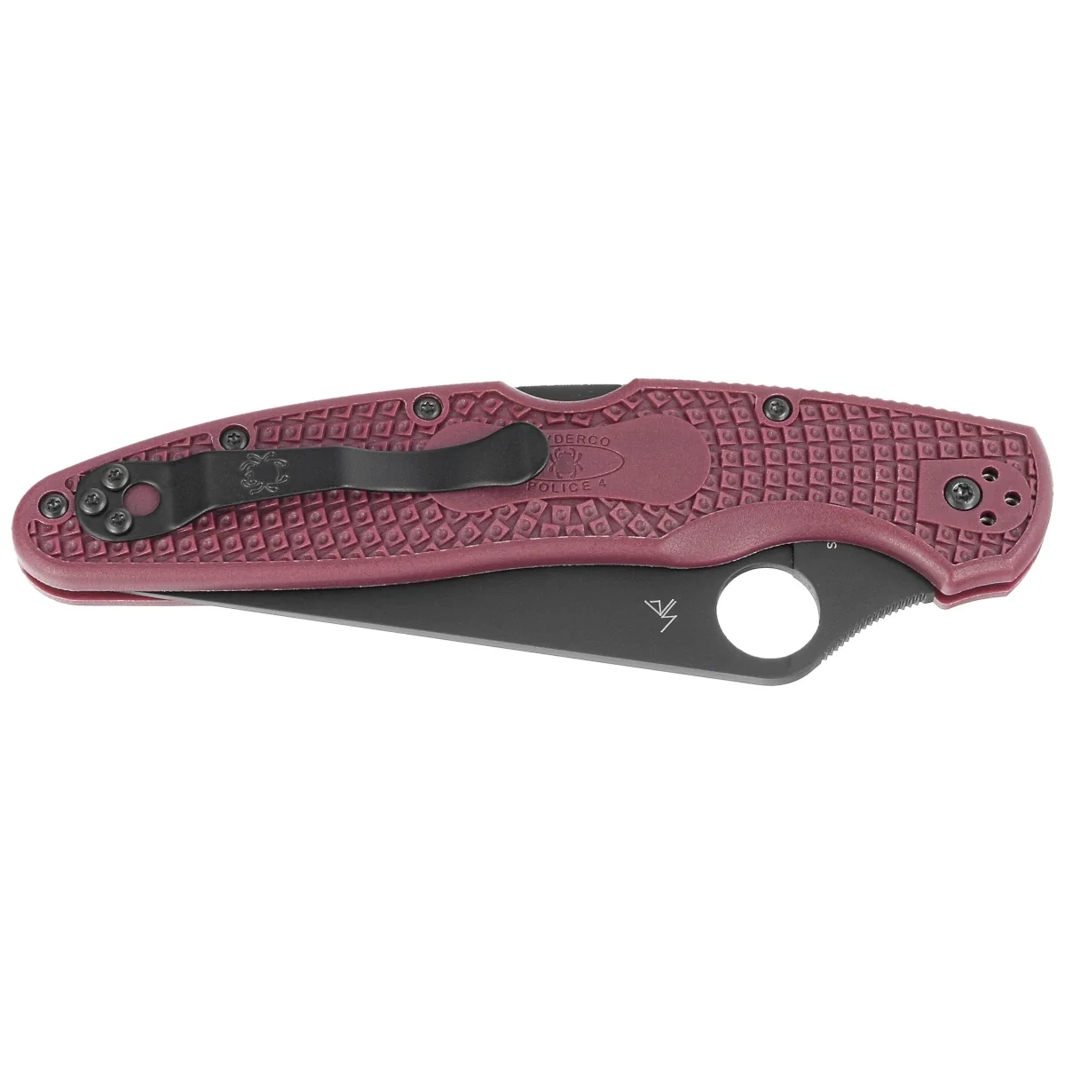 • Police 4 Sprint Run™ Burgundy FRN, Black PD#1, a limited edition of one of Spyderco's most famous EDC folding knives, the Police model. Modern Carpenter® Technology's Micro-Melt PD#1 steel in burgundy FRN plastic grips.