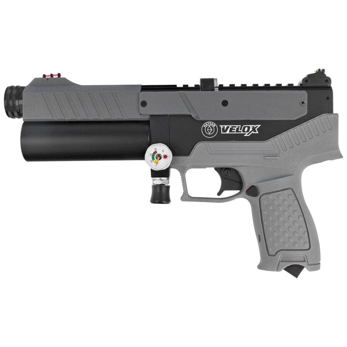 • Velox Grey .177 a semi‑automatic PCP pistol from Hatsan with a semi‑auto reloading system. Ideal for dynamic shooting. Two 50cc air tube, filled to 250 bar, ensure long-lasting shooting. Available in 4.5 mm, 5.5 mm, and 6.35 mm calibers.