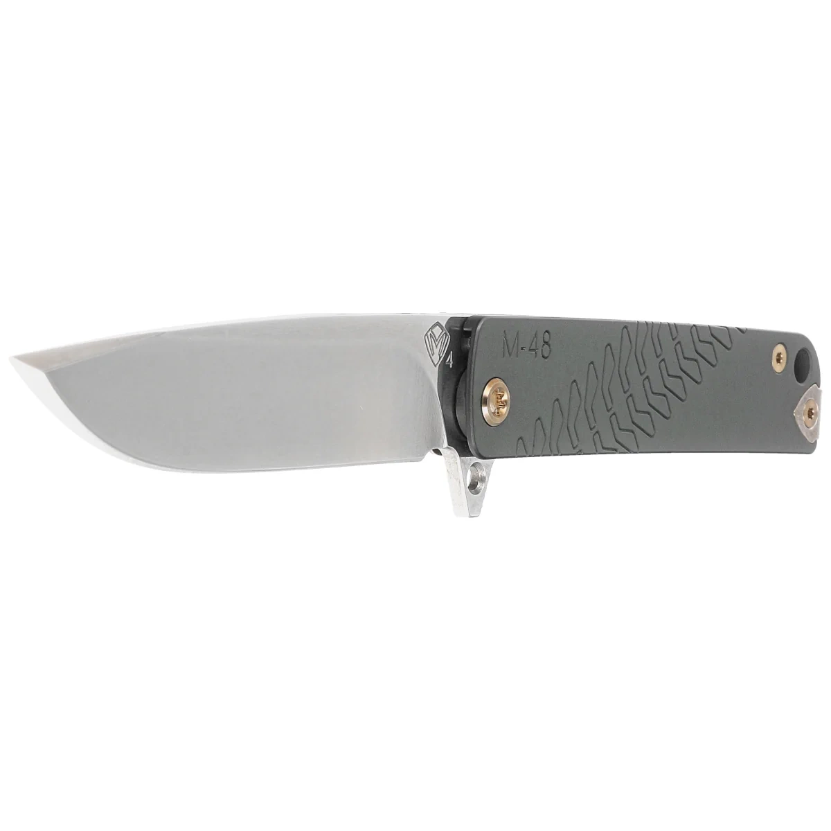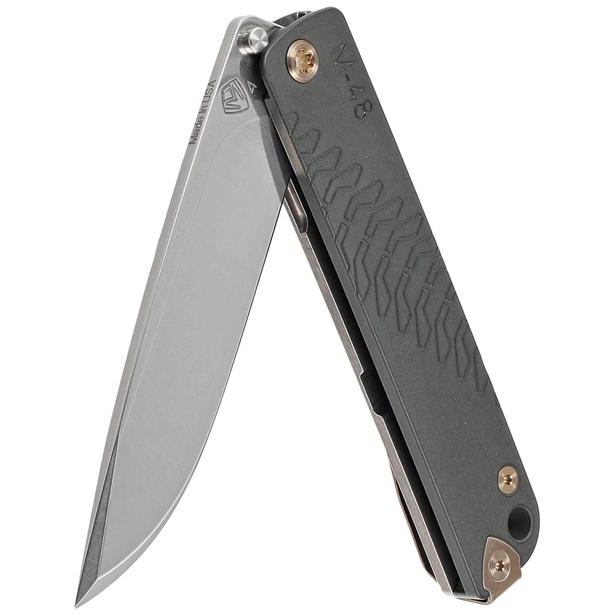 - M-48 Green Aluminum, Bronze HW/Clip, Tumbled is a tribute to the M-48 Patton tank. Slim semi-custom folding knife from Medford Knife & Tool features a hand-ground blade with an innovative Magnus Edged tip. For those who like slimmer knives than Praetorian