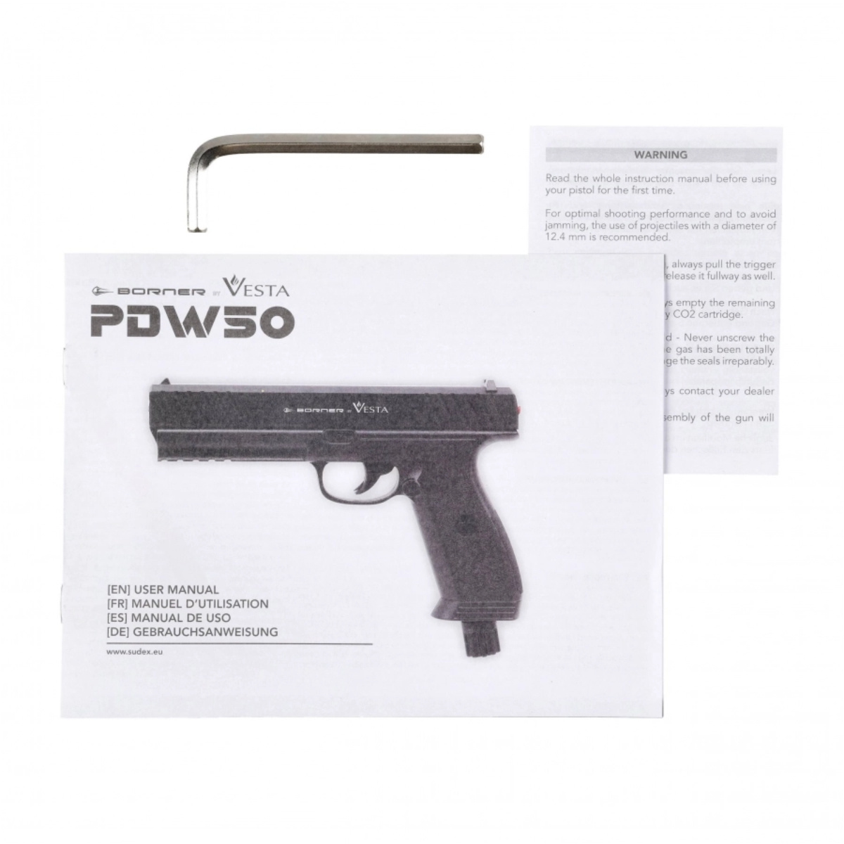 Borner PDW50 RAM Pistol, .50 Cal is a modern RAM (Real Action Marker) defensive weapon designed to fire .50 caliber rounds. This model is an excellent choice for individuals seeking an effective tool for self-defense, shooting practice, and tactical simulations.