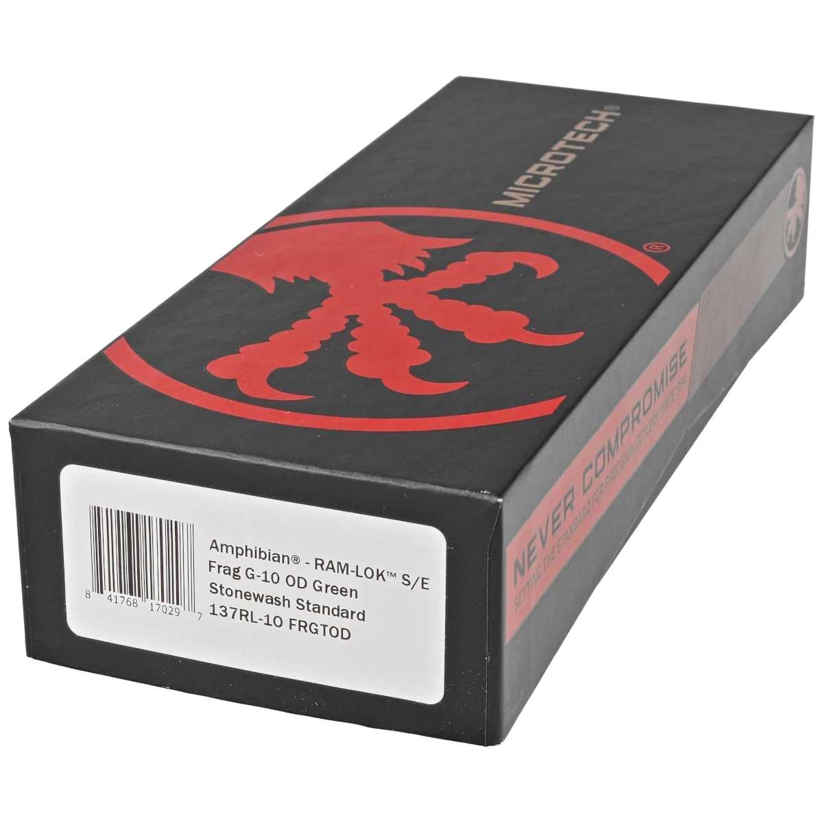 - Amphibian Ram-Lok S/E Frag OD Green G10, Stonewashed reissue of folding knife with intuitive RAM-Lock. Superior M390MK blade steel, the result of collaboration between Microtech and Bohler engineers. Ergonomic Handle. Designed by Anthony Marfione!