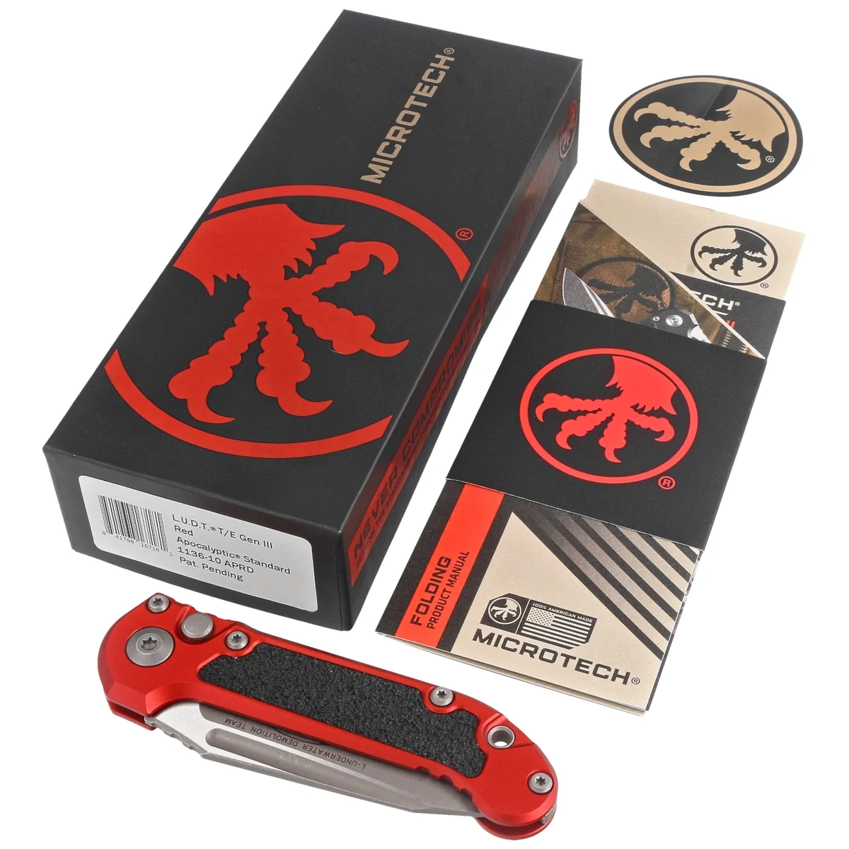 Microtech LUDT Gen III T/E Automatic Knife Red Aluminum, Apocalyptic M390MK by Tony Marfione (1136-10APRD)