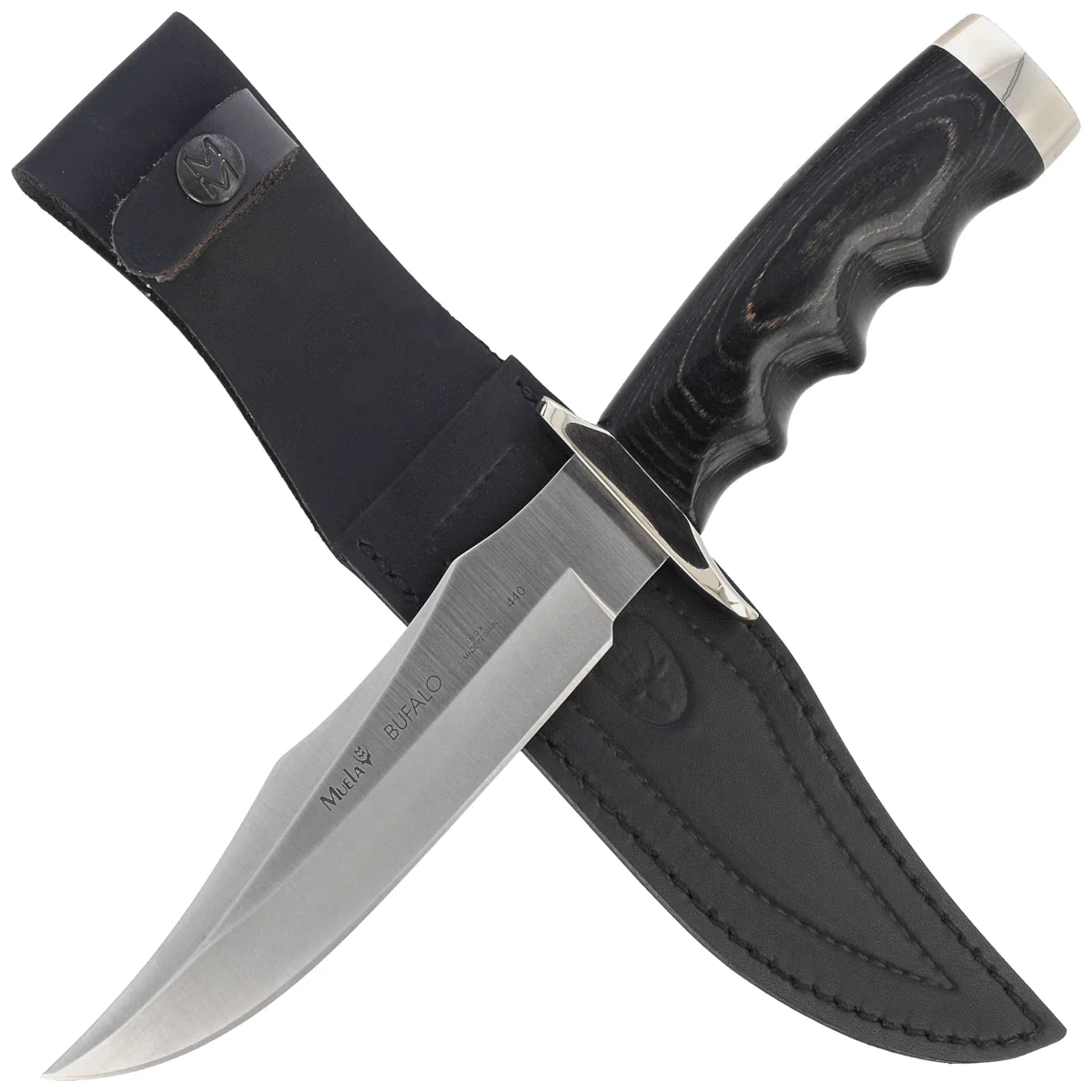 - Bufalo-17M Black Pakka Wood, Satin is robust outdoor knife made from 440 stainless steel with durable Black Pakka wood handle and hand-stitched leather sheath. Designed with versatility in mind, this tool is perfect for awide range of outdoor applications