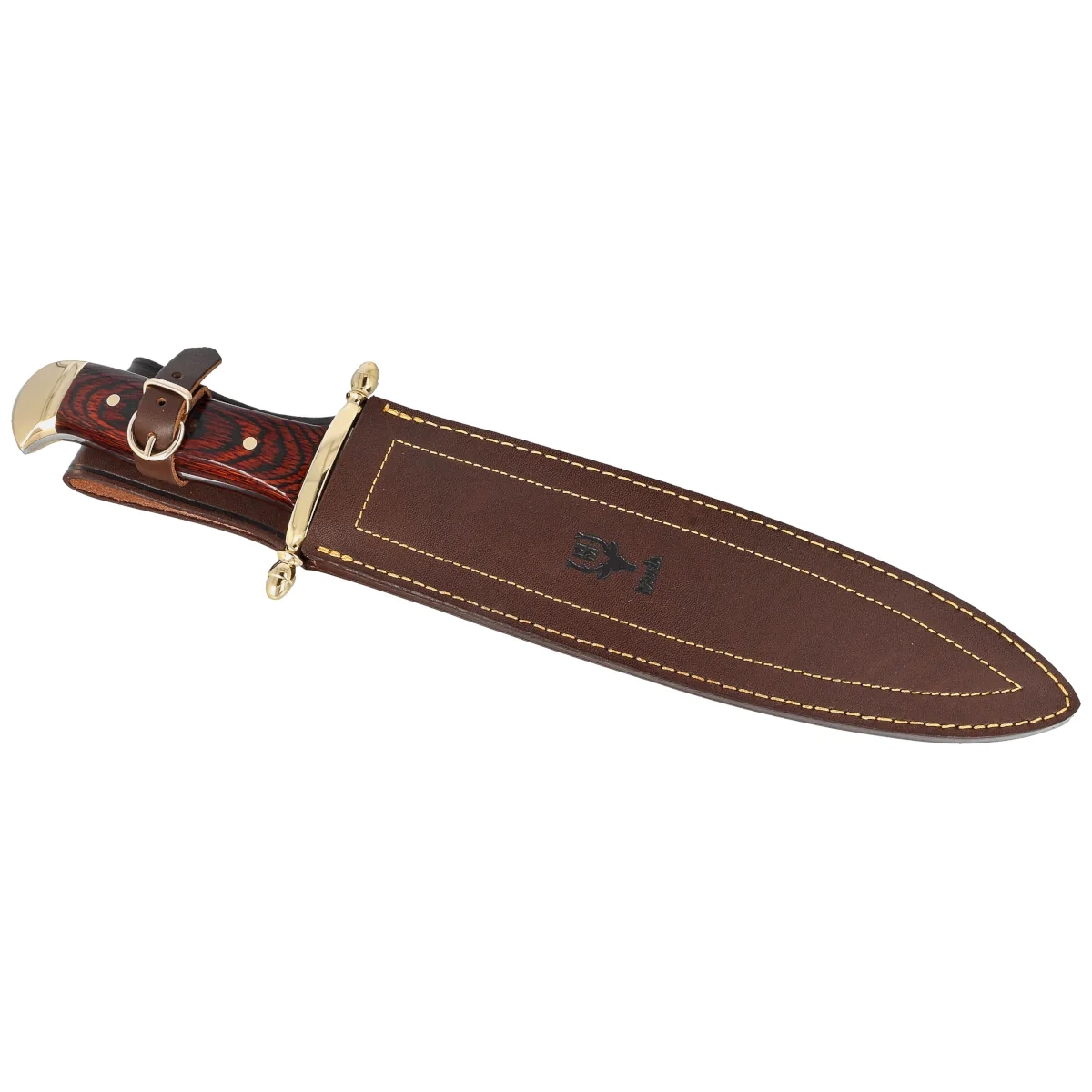 Sheath - hand-stitched, made of top quality brown cowhide with embossed manufacturer's logo. The edges of the case are stitched with decorative thread. Fastened with a Prym type snap. The belt attachment allows the knife to be carried in an upright position.