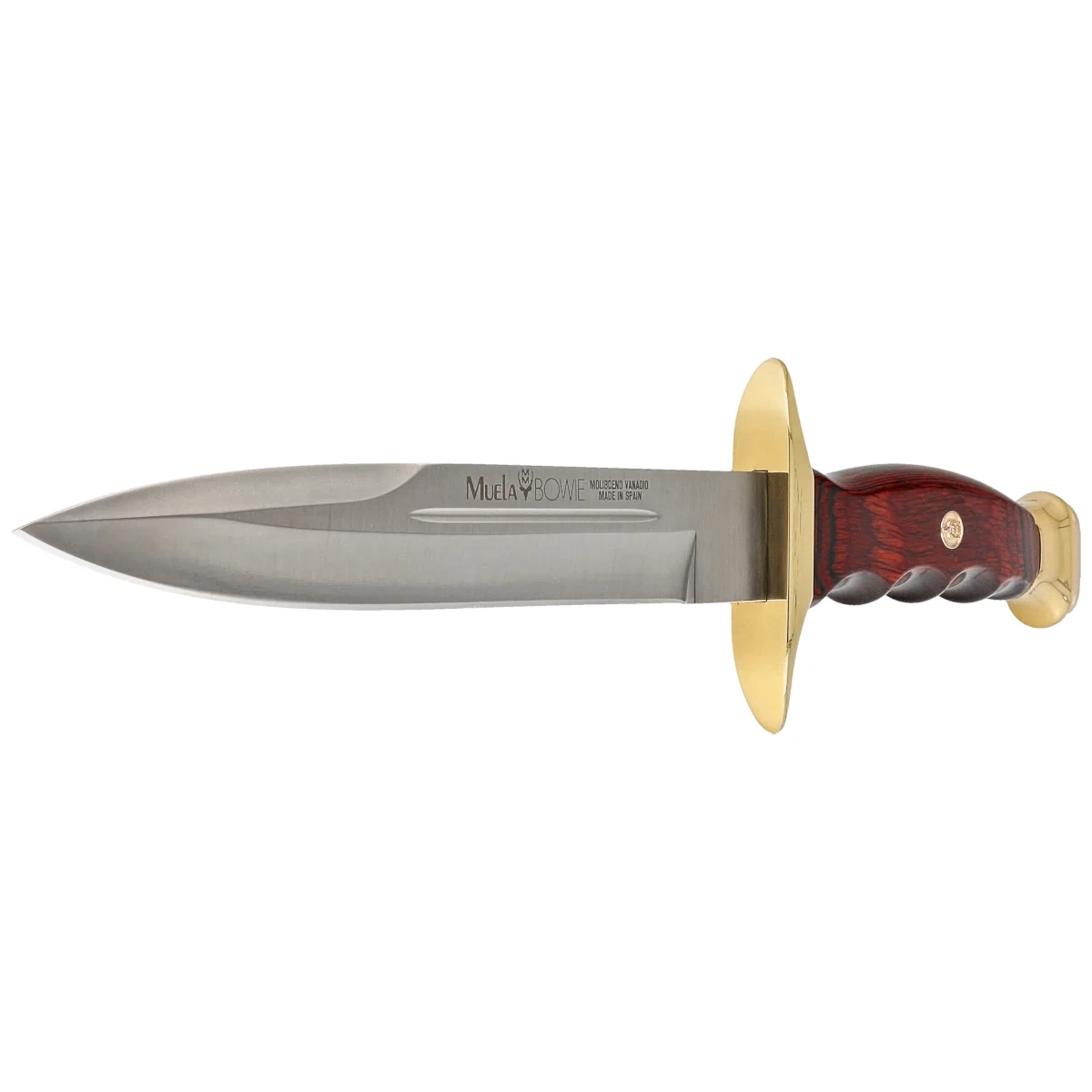 - Muela BW-19 Pakka Wood, Satin large knife made from X50CrMoV15 steel. Handle scales feature unique Coral Pakka wood pattern, finished with brass pommels. Hand-stitched leather sheath. It ideal for enthusiasts of survival, outdoor activities, hunting.