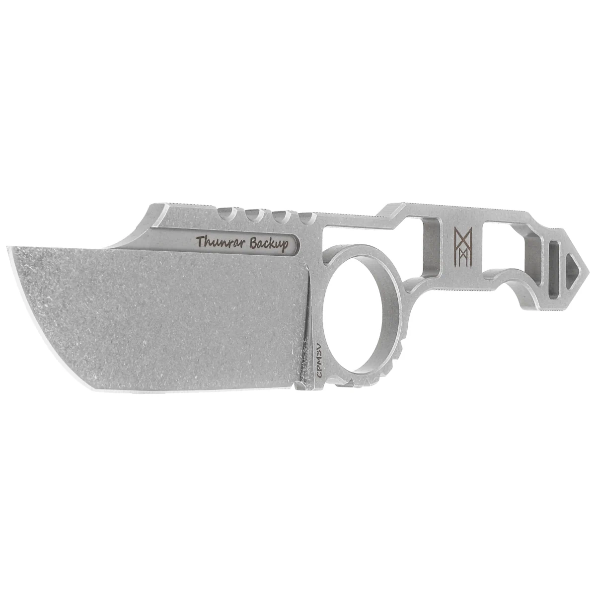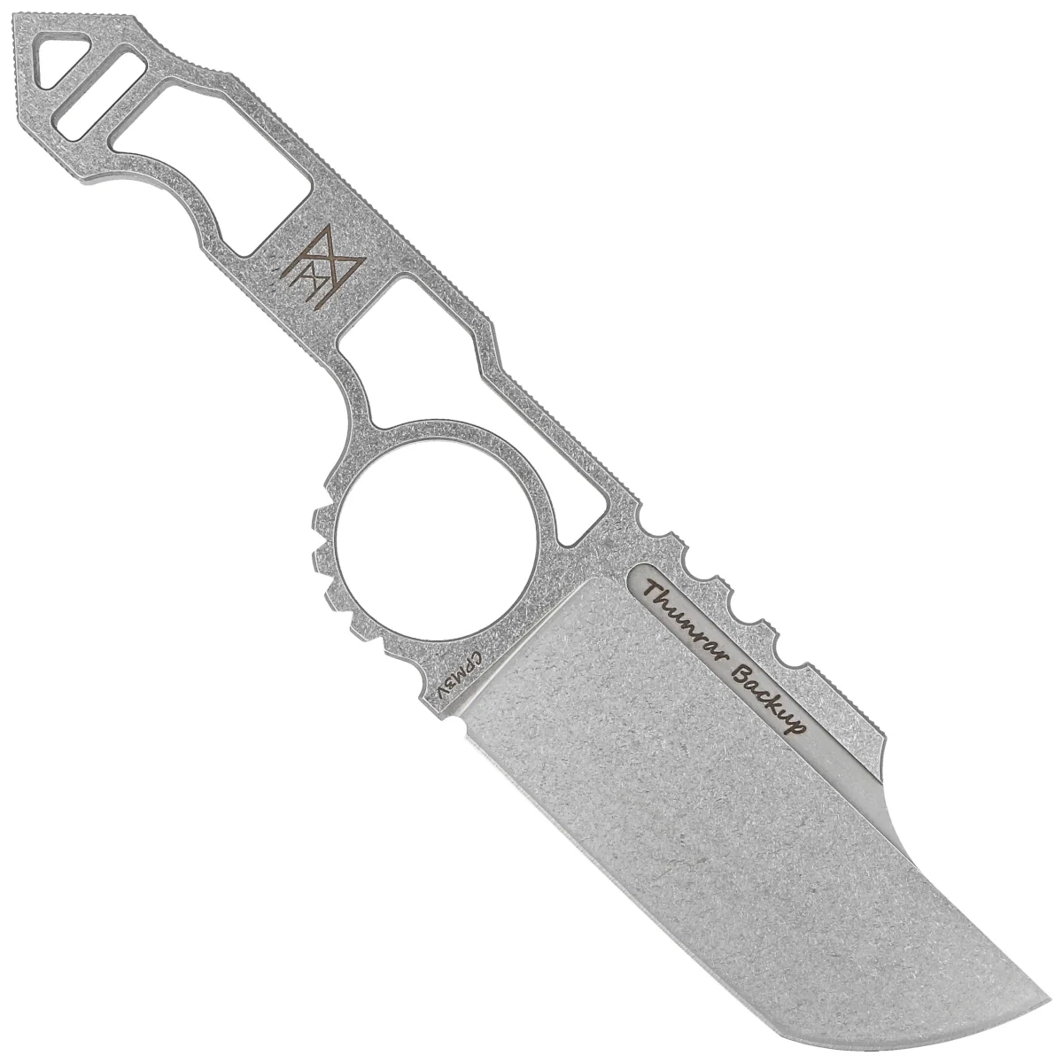 - Thunrar Backup Gray Steel, Satin, a strong, lightweight knife with a fixed blade and monolithic construction. Blade made of Sandvik 14C28N stainless steel for good sharpness retention. Comfortable skeletonized handle. Flat kydex sheath with Tek-Lok