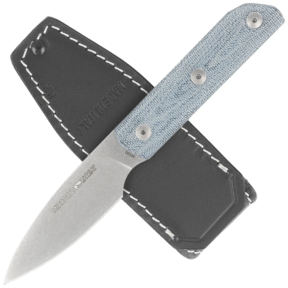 Viper Mirror2 Blue Denim Canvas Micarta, Stonewashed M390 by Igor Bortolussi knife (VT4064CD)