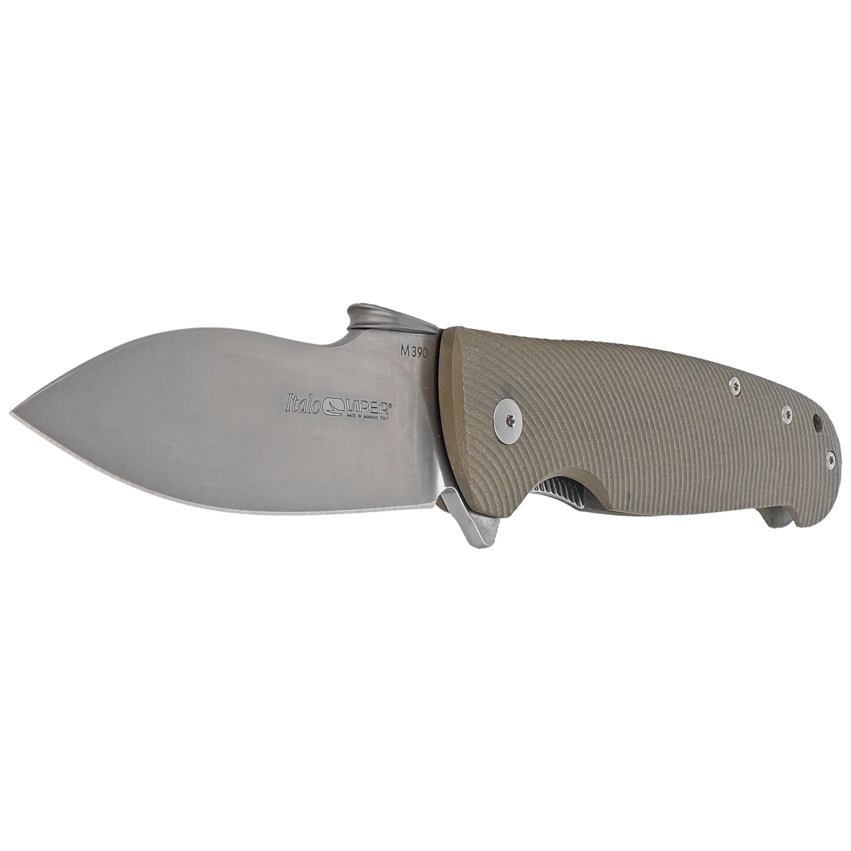 - Italo Green G10, Satin unique E.D.C. folder aimed at discerning buyers, combines Italian style with high utility. Designed by knifemaker Fabrizio Silvestrelli. Blade made of Böhler M390 steel, comfortable G10 composite handle.