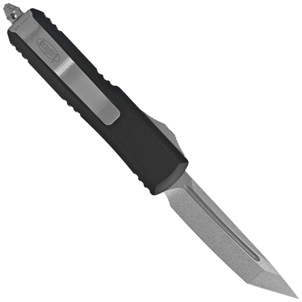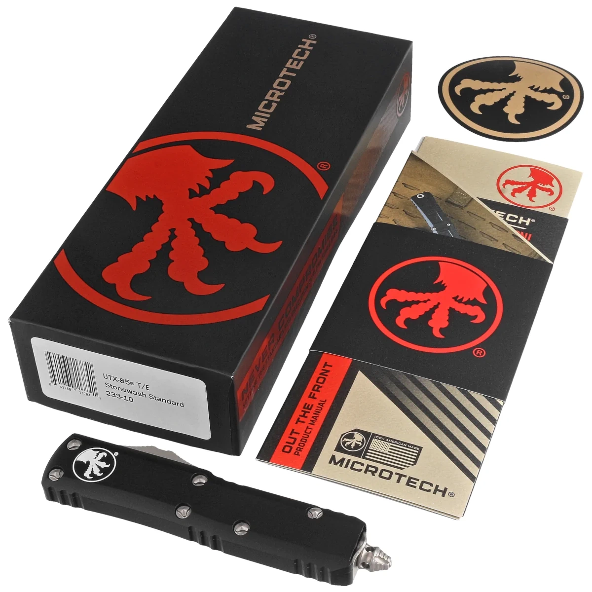 Microtech UTX-85 T/E Black Aluminum OTF Knife, Stonewashed M390 (233-10)