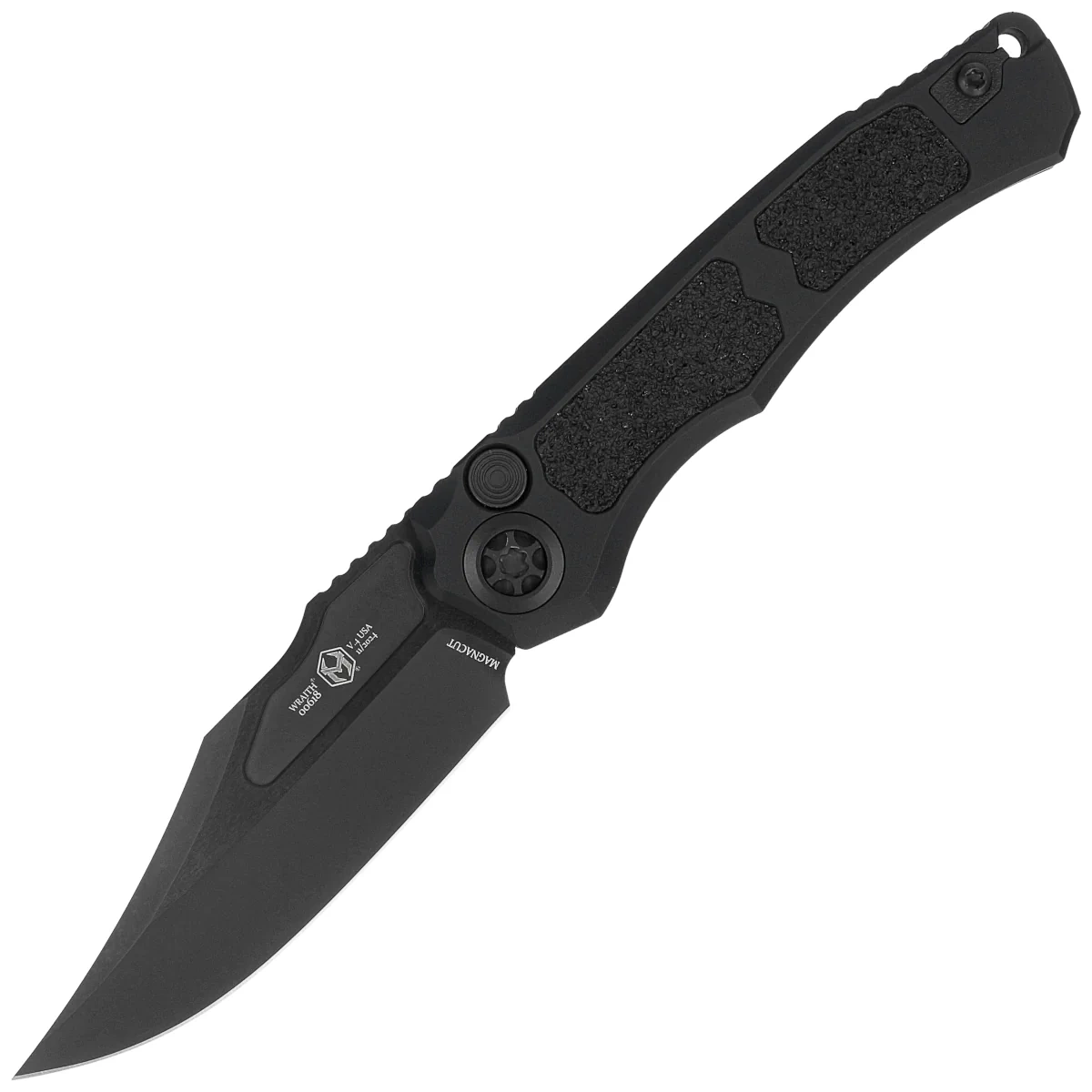 Wraith V4 Auto Tactical Black DLC Aluminium/3M, Black DLC is a powerful switchblade automatic knife from the Wraith-A series in the Tactical version. It features a spring mechanism that deploys the blade with tremendous force and power, setting it apart from other knives. Equipped with a MagnaCut steel blade coated in a matte black DLC finish and an aluminum handle featuring black traction inlay, combining enhanced grip with refined elegance. Designed for on-the-job performance, it combines elegance and functionality. The precision craftsmanship quality of the materials makes it not only a practical tool, but also a work of functional art. Whether you are a knife collector or looking for a reliable tool for everyday use, the Wraith Auto is a knife that is sure to exceed your expectations, a unique experience that redefines what an automatic knife can be.