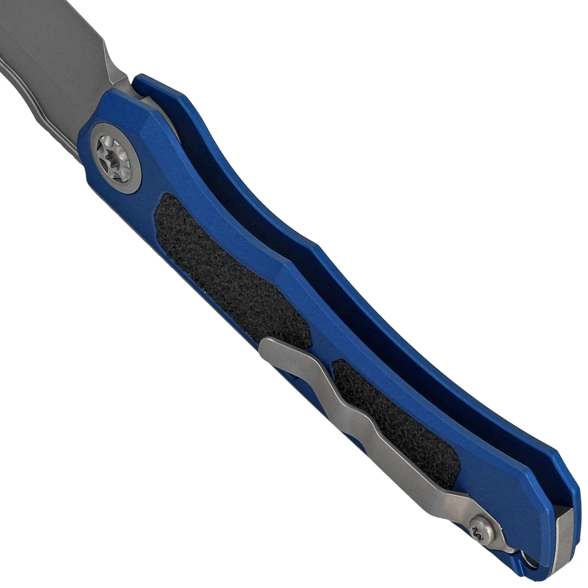 Wraith V4 Auto Blue Aluminum/3M, Bead Blasted is a powerful switchblade automatic knife from the Wraith-A series, utilizing a spring-loaded blade-opening mechanism that works with tremendous force and power to set it apart from other knives. Equipped with a MagnaCut steel blade and an aluminum handle featuring black traction inlay, combining enhanced grip with refined elegance. Designed for on-the-job performance, it combines elegance and functionality. The precision craftsmanship quality of the materials makes it not only a practical tool, but also a work of functional art. Whether you are a knife collector or looking for a reliable tool for everyday use, the Wraith Auto is a knife that is sure to exceed your expectations, a unique experience that redefines what an automatic knife can be.