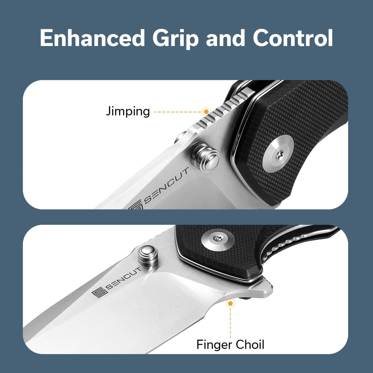 Skarnax Black G10, Satin is an excellent E.D.C. folding knife with Drop Point Blade made by Sencut. An easy-to-carry, sturdy knife with a durable, wide blade suitable for heavy use. Made of good materials at an extremely attractive price, the folder features a 9Cr18MoV steel blade and a reversible clip. Straight handle made of G10 composite. Bestseller!
