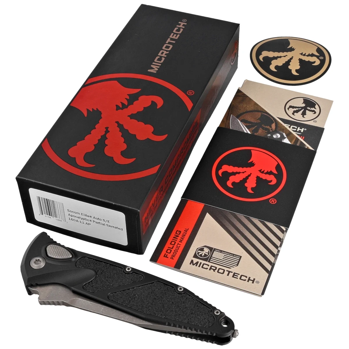 Microtech Socom Elite Auto S/E Automatic Knife Black Aluminum, Apocalyptic P/S M390 by Tony Marfione (160A-11AP)