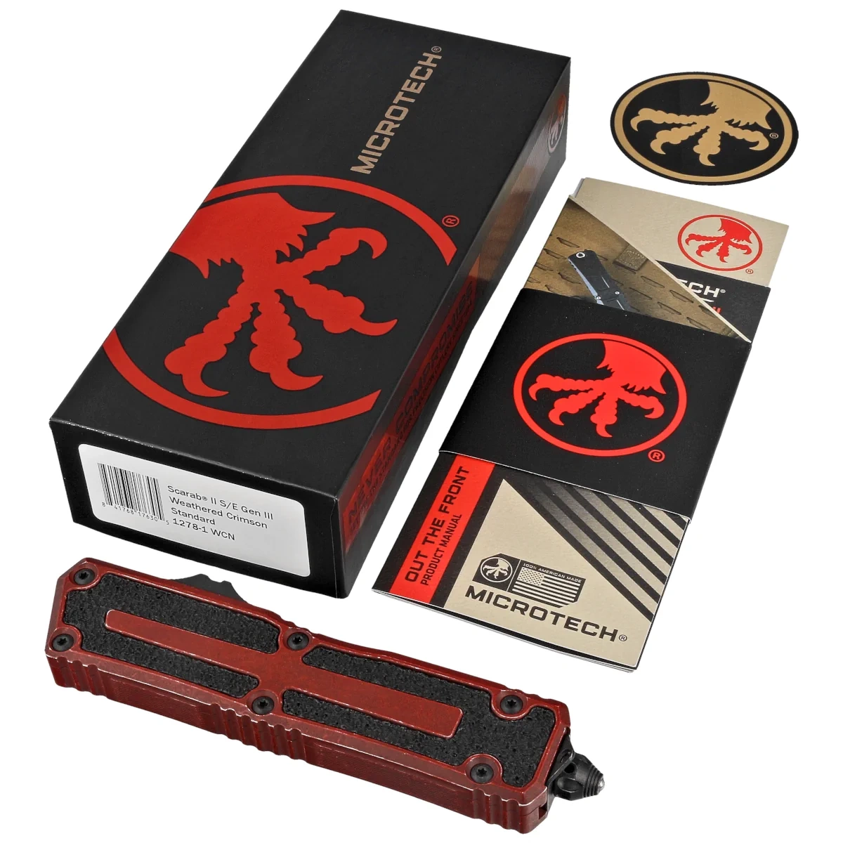 Scarab II Gen III S/E Weathered Crimson Aluminum, Crimson is the pinnacle of automatic tactical knife excellence, drawing inspiration from the original Microtech Ultratech design. Built to withstand the toughest conditions, the new Scarab II is the best choice for intensive use. Retaining the design features of its predecessor, it sets a new standard for OTF (Out The Front) technology.